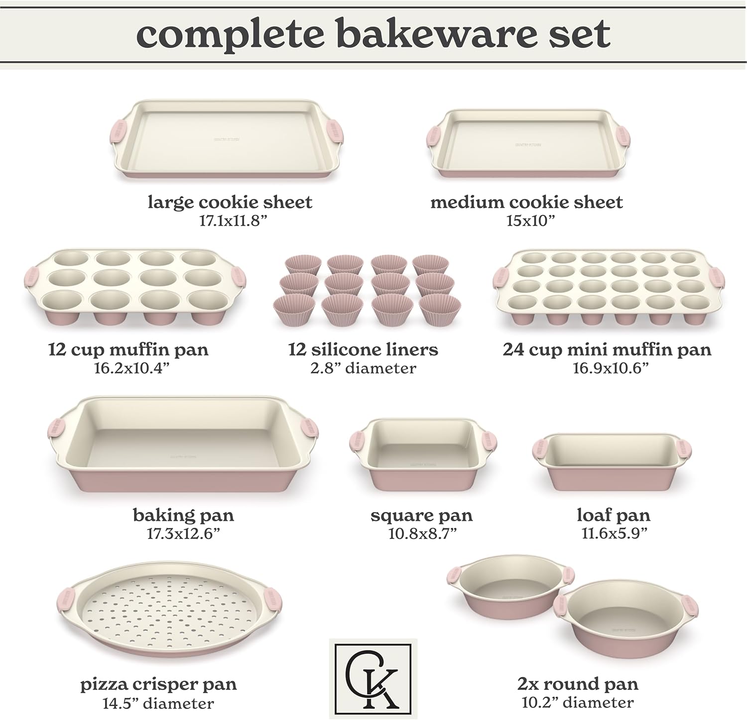 • 22 Piece Baking Set: This space saving beginner baking set includes a variety of pans, perfect for all your baking needs. It includes a non stick cookie sheet, a large and small baking pan, and more.