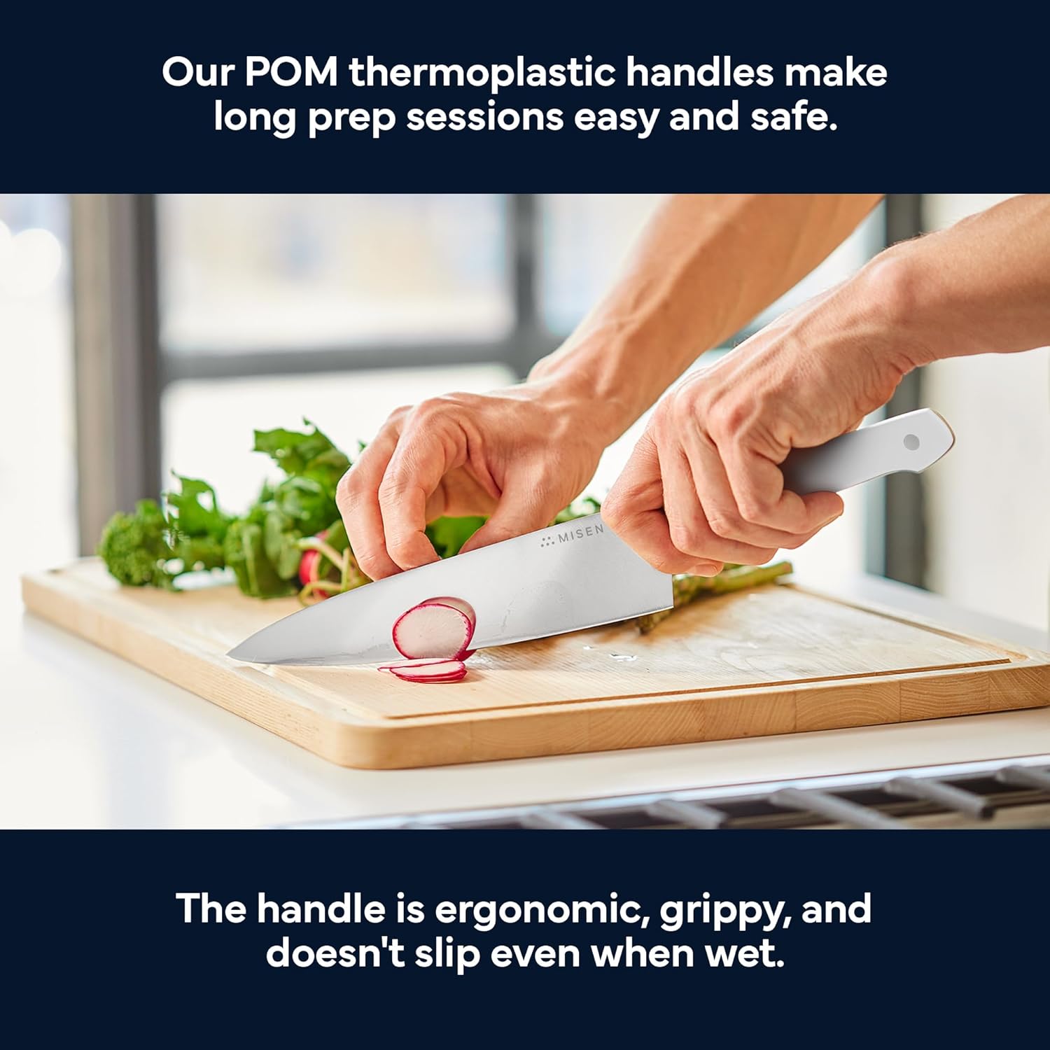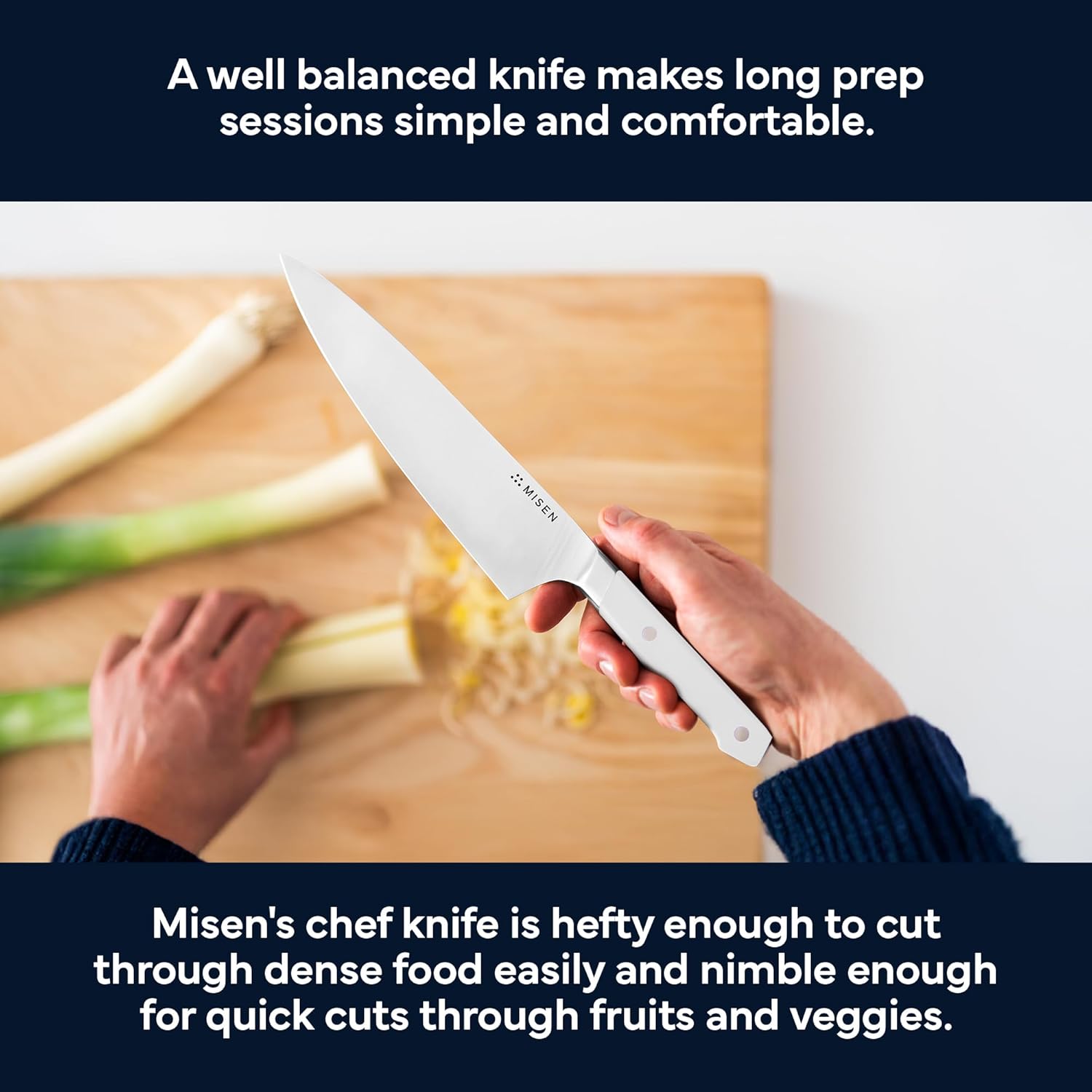 Misen 8" Chef Knife – High Carbon Japanese AUS-10 Stainless Steel – Hybrid German & Japanese Blade – Precision Kitchen Knife for Professionals & Home Cooks – Ultimate Cutting Performance - White