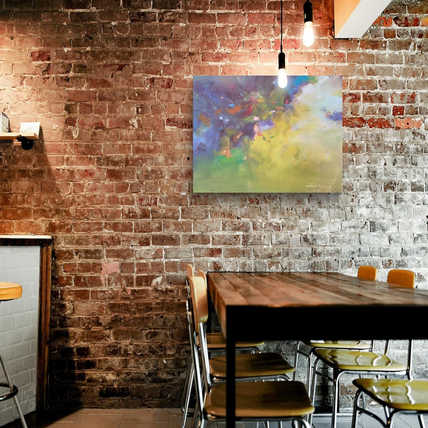 • Artist-Authorized Reproduction—Night of Stardust – Abstract canvas wall art glowing with deep blues, greens, and flashes of yellow, evoking the mystery of a starlit sky. The layered brushstrokes create a luminous rhythm, blending cosmic wonder with the quiet beauty of nature. This artist-authorized reproduction makes stunning wall decor for your living room, bedroom, office, or modern home space.