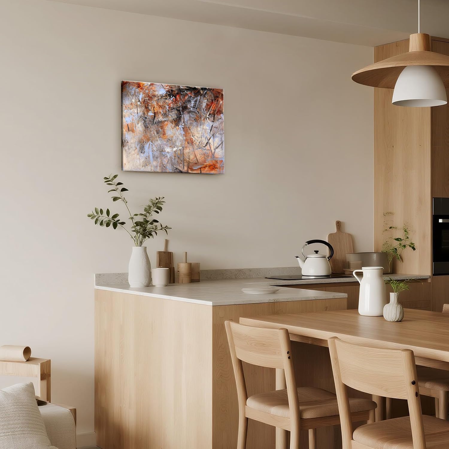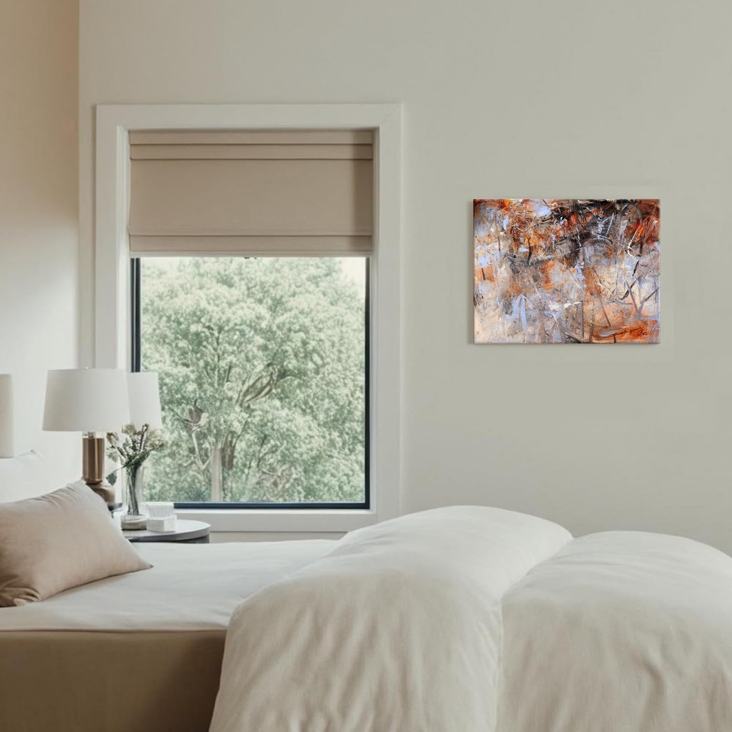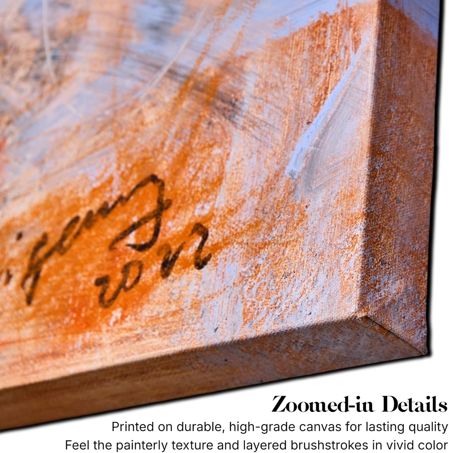 • Artist-Authorized Reproduction—Mysterious Journey – Shades of gray, white, and earthy orange flow in sweeping strokes with textured depth, suggesting movement through mist and shadow. The abstract composition evokes travel into the unknown—complex, layered, and full of discovery. Artist-authorized, this canvas wall art preserves the original detail, offering modern abstract wall decor for your living room, bedroom, or office.