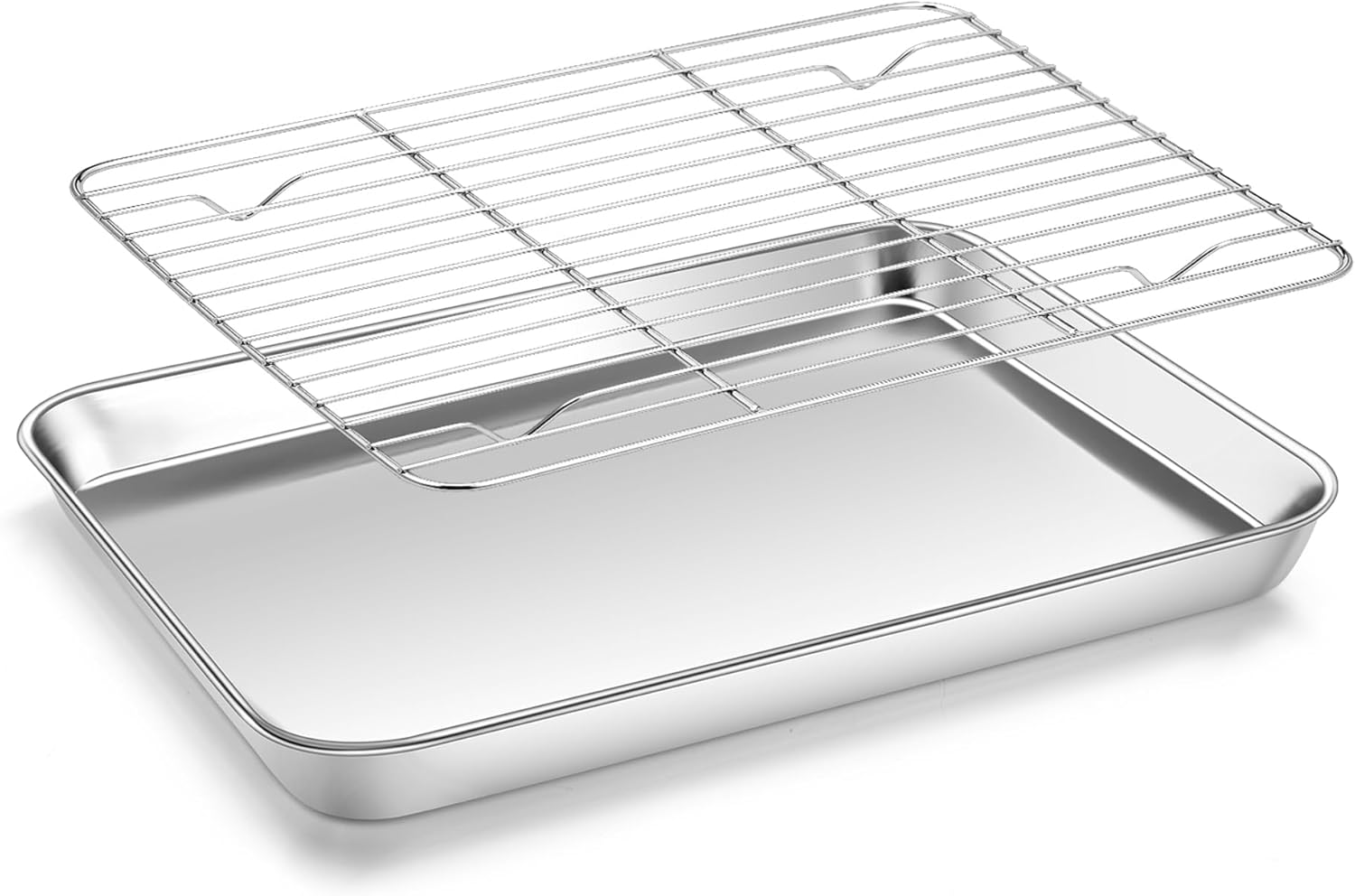 Homikit Baking Sheet with Wire Rack, 10 x 8 Inch Stainless Steel Cookie Sheets for Baking, Small Baking Pan with Cooling Rack, Nonstick Metal Toaster Oven Bacon Tray, Rust Free & Dishwasher Safe