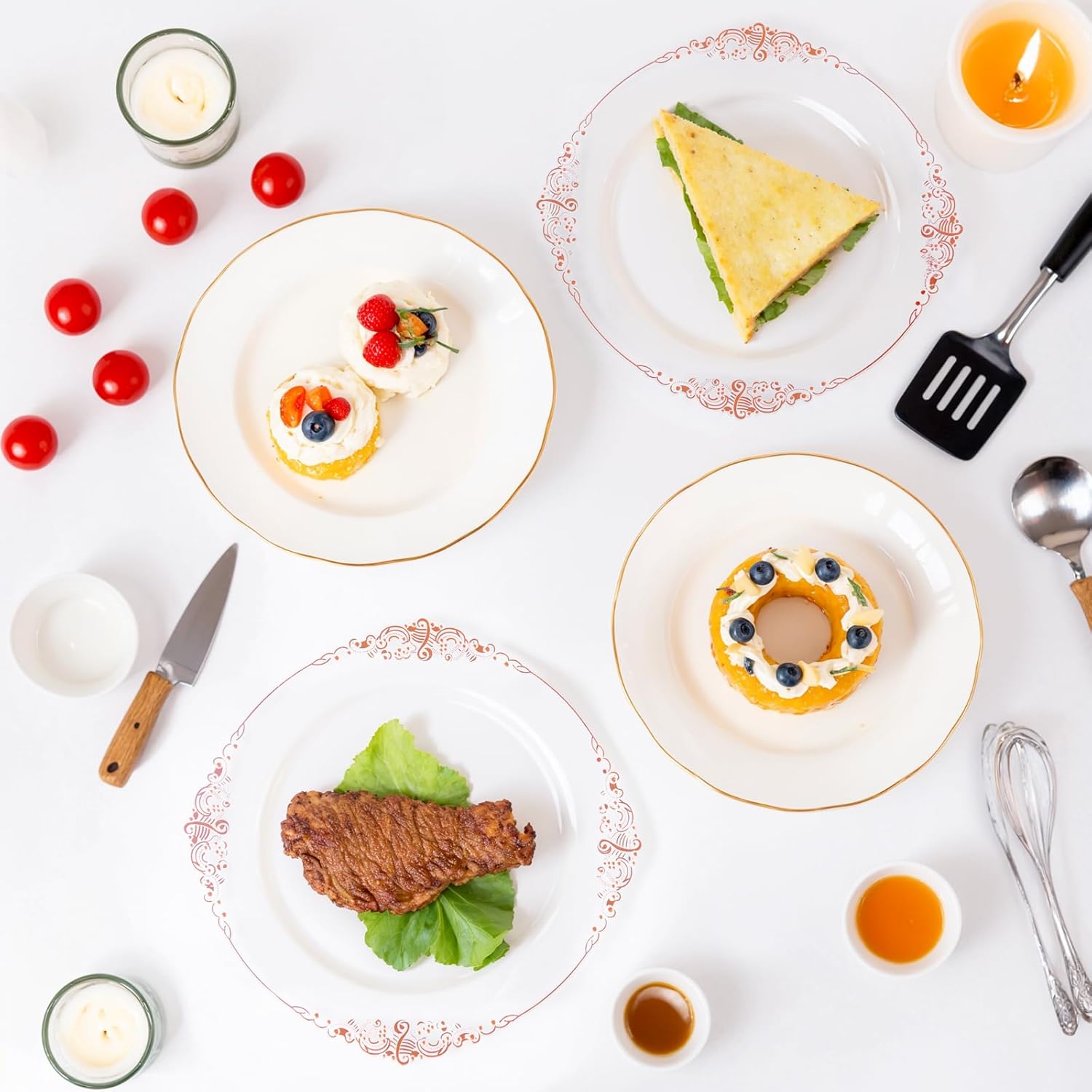 • Great Value: This rose gold party plates offer 51 10.25-inch and 51 7.5-inch items, providing exceptional value and all you need to host a memorable occasion. Large 10.25-inch plates ideal for main courses, while 7.5-inch plates perfect for appetizers and desserts