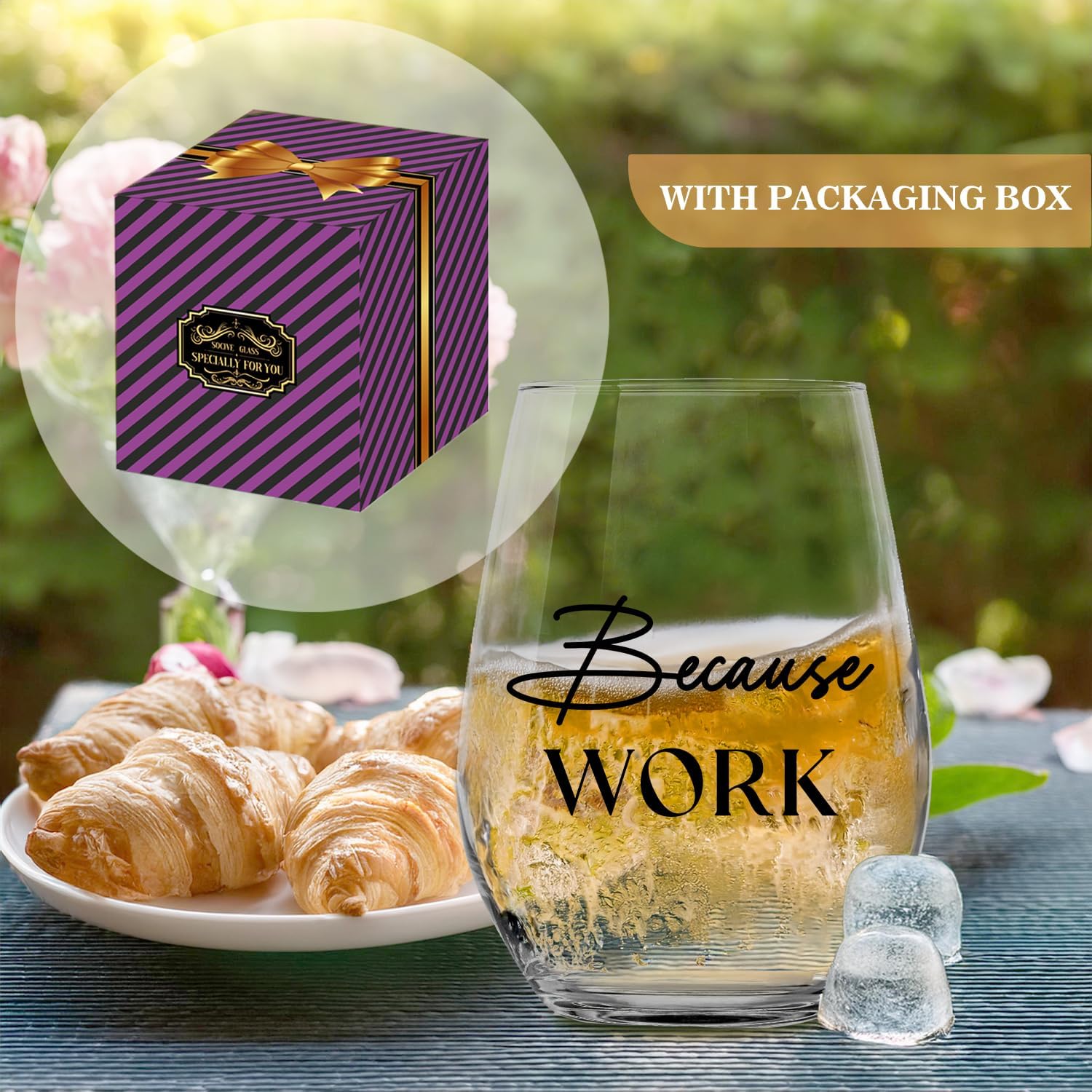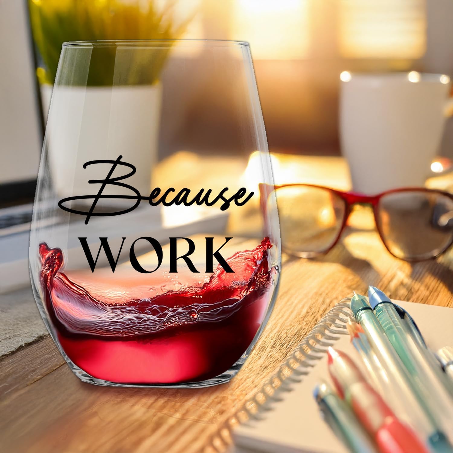 Because Work Funny Stemless Wine Glass 15oz, Unique Wine Glasses for Women, Coworker & Boss Lady Gifts, Funny Wine Glasses, Birthday Gag Gifts for Men, Women, Employee, Staff, Father's Day
