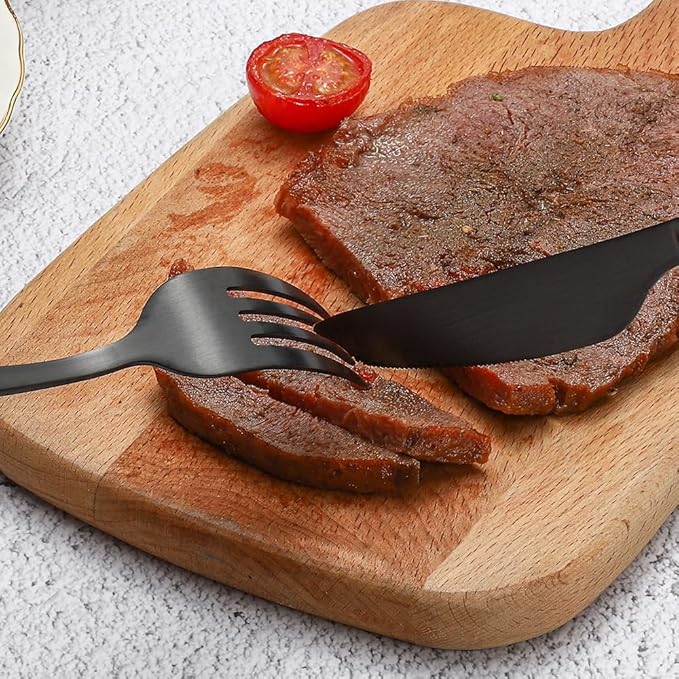 • Durable Silverware Set: Our kitchen cutlery set is made of premium stainless steel, will not easy bend and break, rust resistant. Ergonomically designed handle, weight, size, nice balance, not too light to bend, comfortable handle for grip.