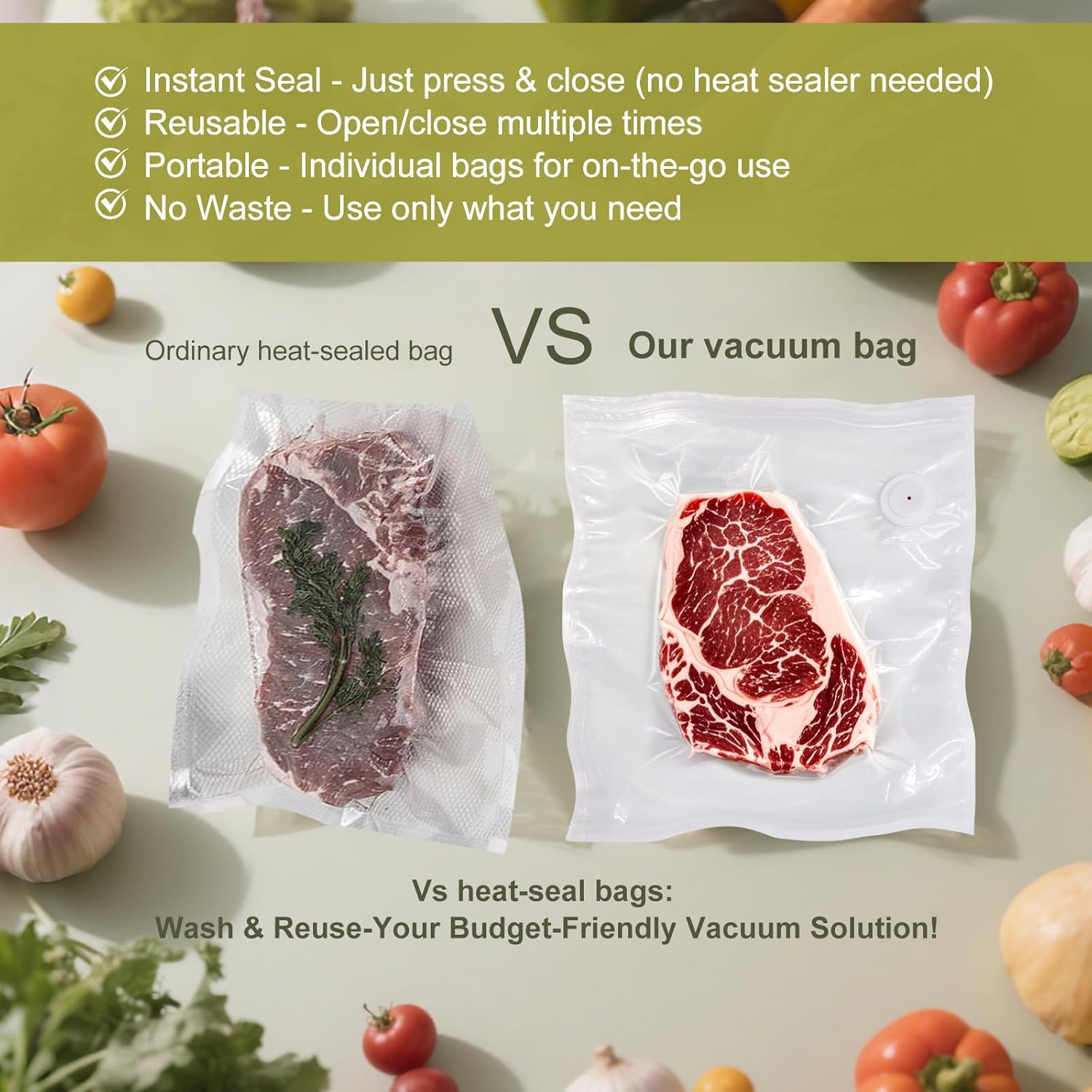 • 【INCREASE STORAGE TIME FOR NUTRITION AND FLAVOR】Compared to regular vacuum bags, meat stays fresh up to 3X longer when frozen, and vegetables stay fresh 2-3X longer in the fridge. Prevents freezer burn, dehydration, and locks in moisture, flavor, and nutrients for vegetables, seafood, meats, and more.
