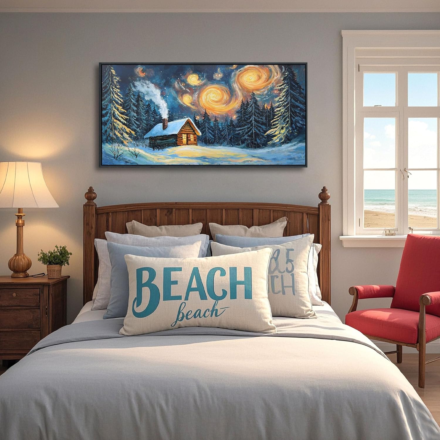 • Paintings Wall Decor : Crafted as high-quality large canvas wall art for living room, every brushstroke is replicated through advanced printing techniques. The texture of snow-laden branches, the cabin’s warm glow, and celestial swirls are vividly rendered. Ideal for paintings wall decor collectors, this vintage wall art balances durability and artistry.