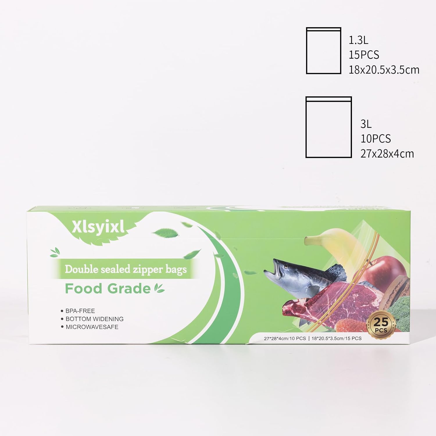 • CAPACITY: Set includes 15 bags of 1.3QT size (7.1x8.1x1.4 inches) and 10 bags of 3QT size (10.7x11x1.6 inches), totaling 25 storage bags