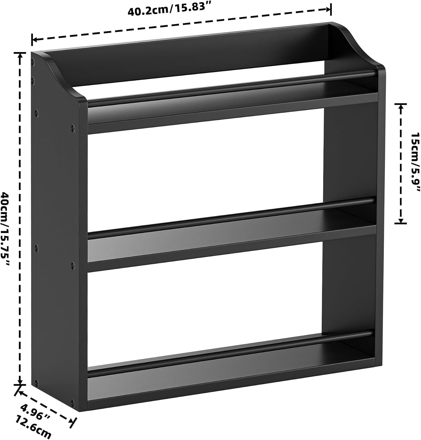 Bamboo Spice Rack Wall Mount or Tabletop Holder, 3-Tier Shelf for Seasoning Bottles Organizer, Medicine Holder (Black)
