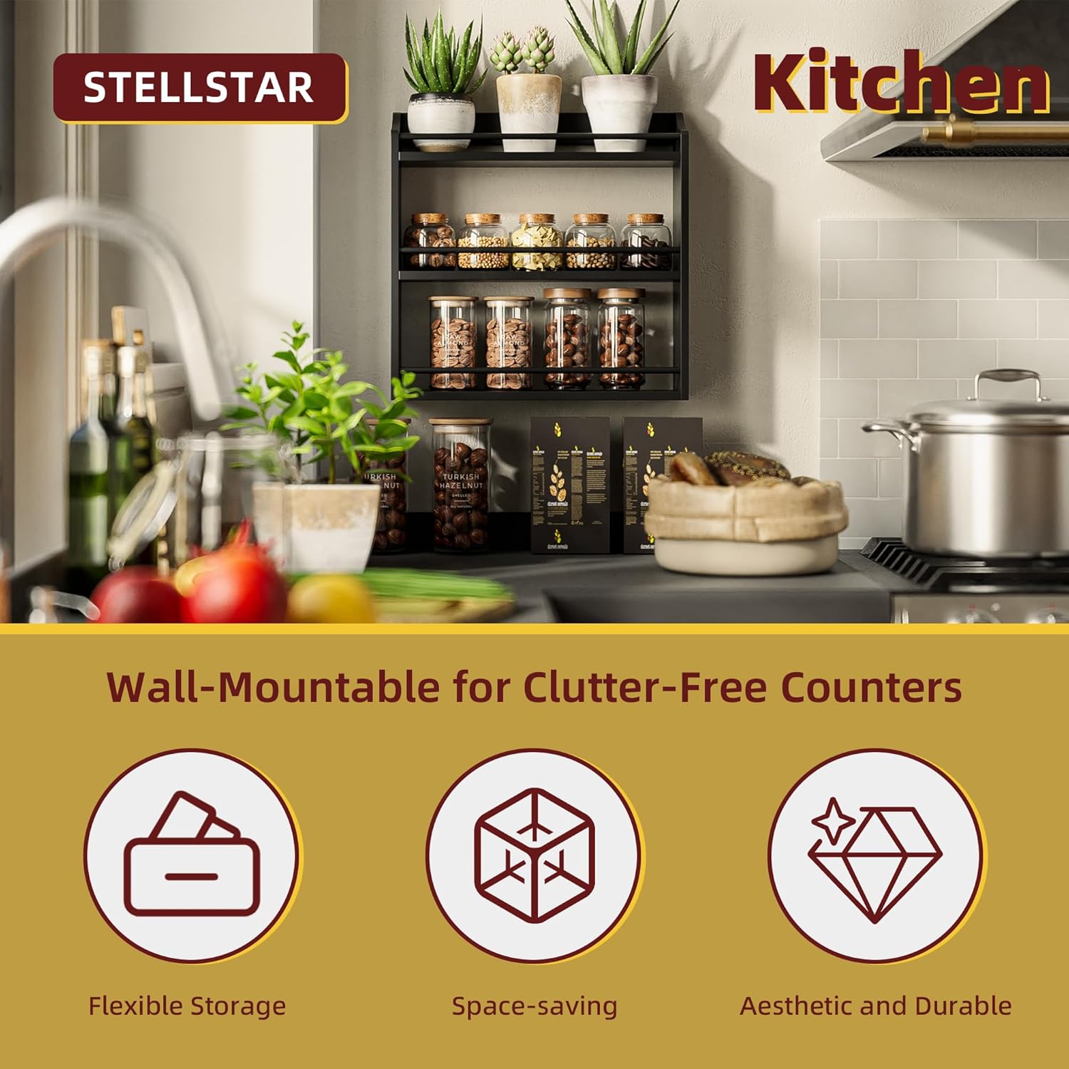 • SIMPLE, ELEGANT & VERSATILE: This rack is both a stunner and a workhorse. Its minimalist design oozes elegance, blending seamlessly with any decor to add warmth. But it’s more than a spice rack! Use it to organize your coffee bar, declutter your bathroom, or neatly stack snacks in mason jars. Wherever you place it—kitchen, pantry, bathroom—it transforms chaos into a tidy, stylish space