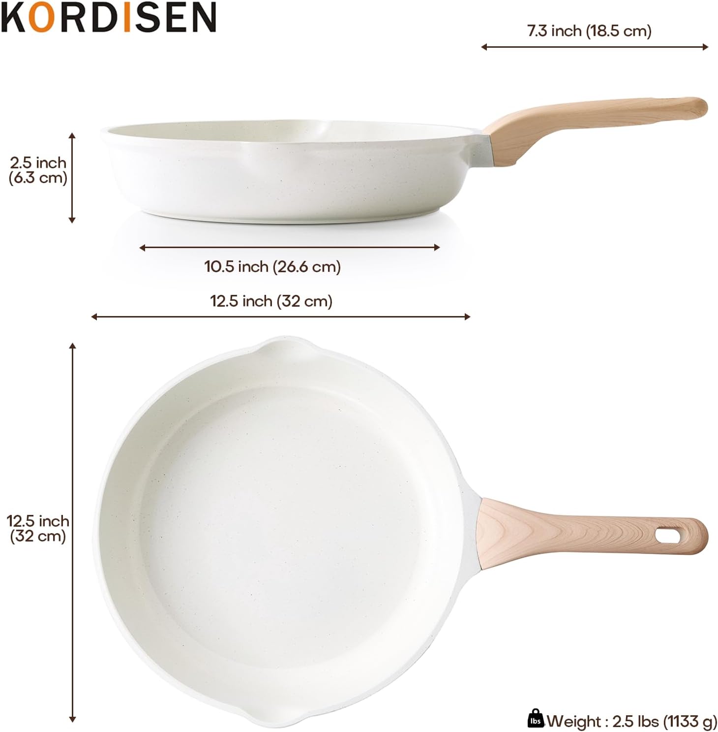 Kordisen Nonstick Ceramic Frying Pan, 12.5 Inch Ceramic Large Skillet, Healthy Non Toxic Cooking Pan, Stay-Cool Handle, Induction Compatible, PFOA & PFAS Free, White