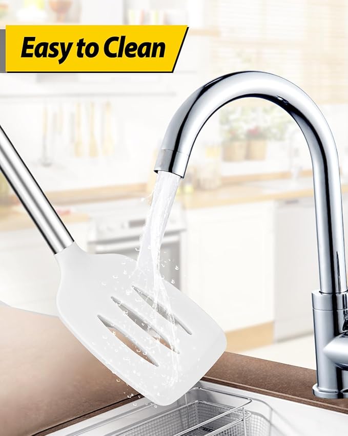 • Widely Used : Thin and flexible edge of the silicone turner is ideal for flipping,frying and turning food; Large capacity design of cooking spoon, used to hold food more convenient; Slotted Spoon can quickly drain the water