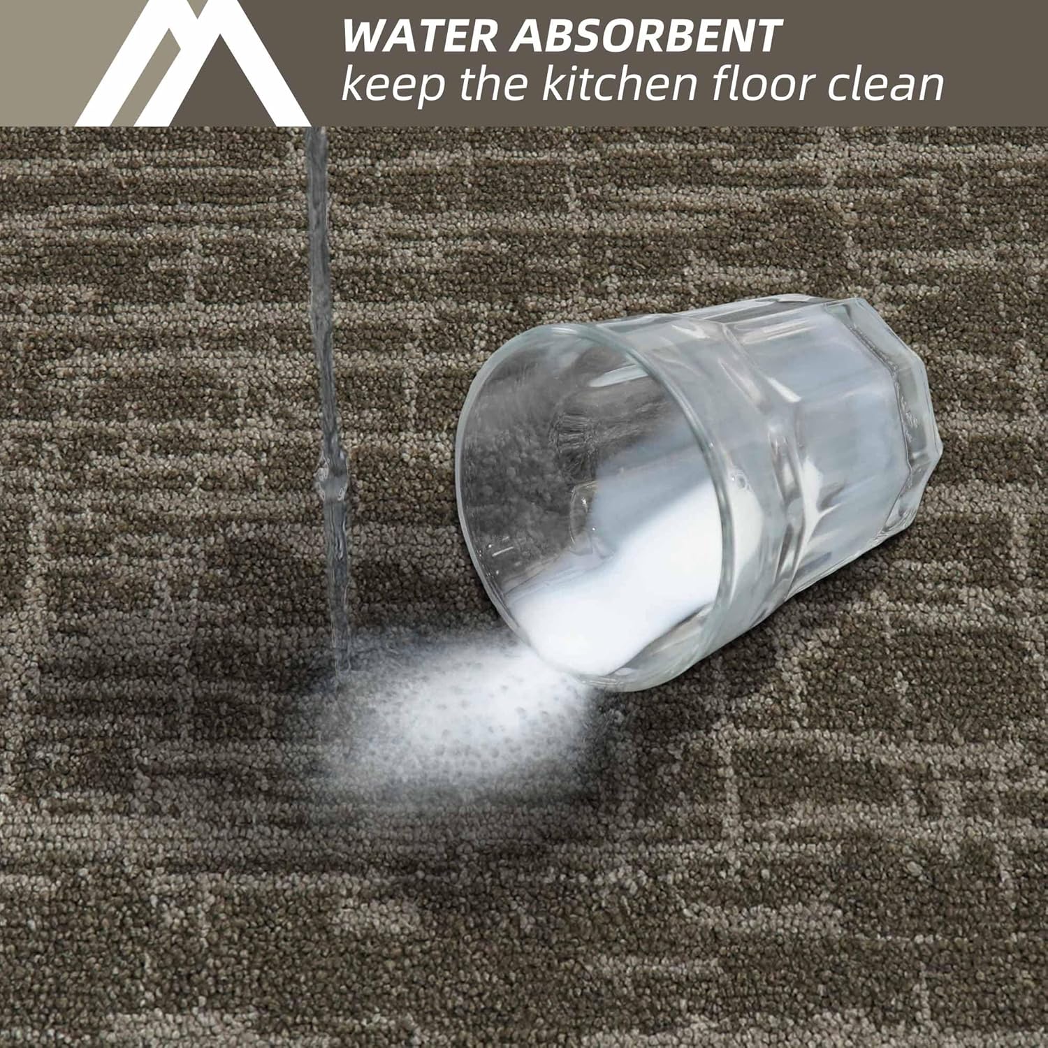 • Comfort,Stain Resistance and Absorbent:Soft kitchen floor mat is crafted from wear-resisting Polyetser fibers with three layers technology,providing a comfortable feeling.The tight sewing and dense yarns ensure exceptional durability,superb absorbency,stain resistance and colorfastness.Protect your floor from oil,moisture,sauces or food particles