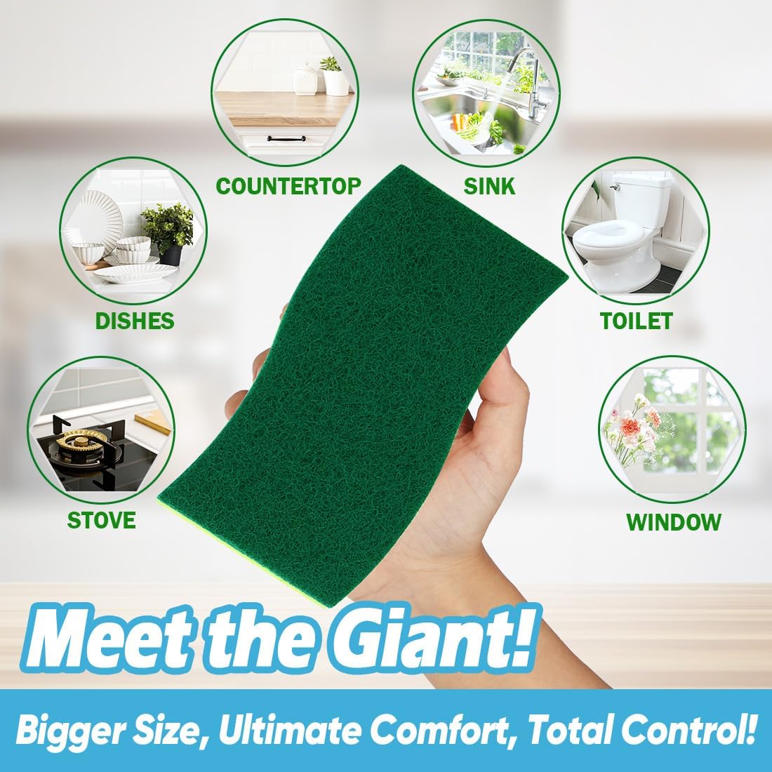 • Meet the GIANT of Clean: The cleaning BEAST; Industrial-strength scour pads DESTROY stuck-on food; Ultra-dense core LAUGHS at wear; Obliterates grime in seconds - bigger, tougher, and unstoppable!