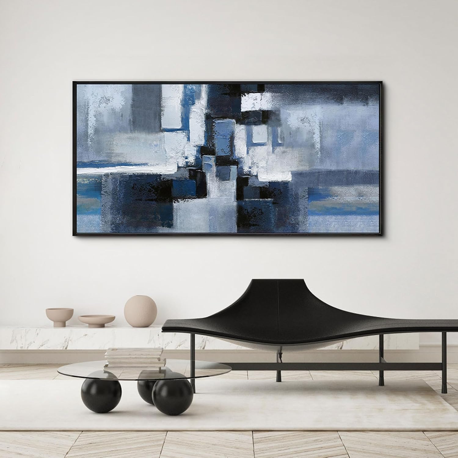 • Large Abstract Wall Art Framed Artwork Size:48x24 inches,where the cityscape transforms into an abstract symphony of blues.