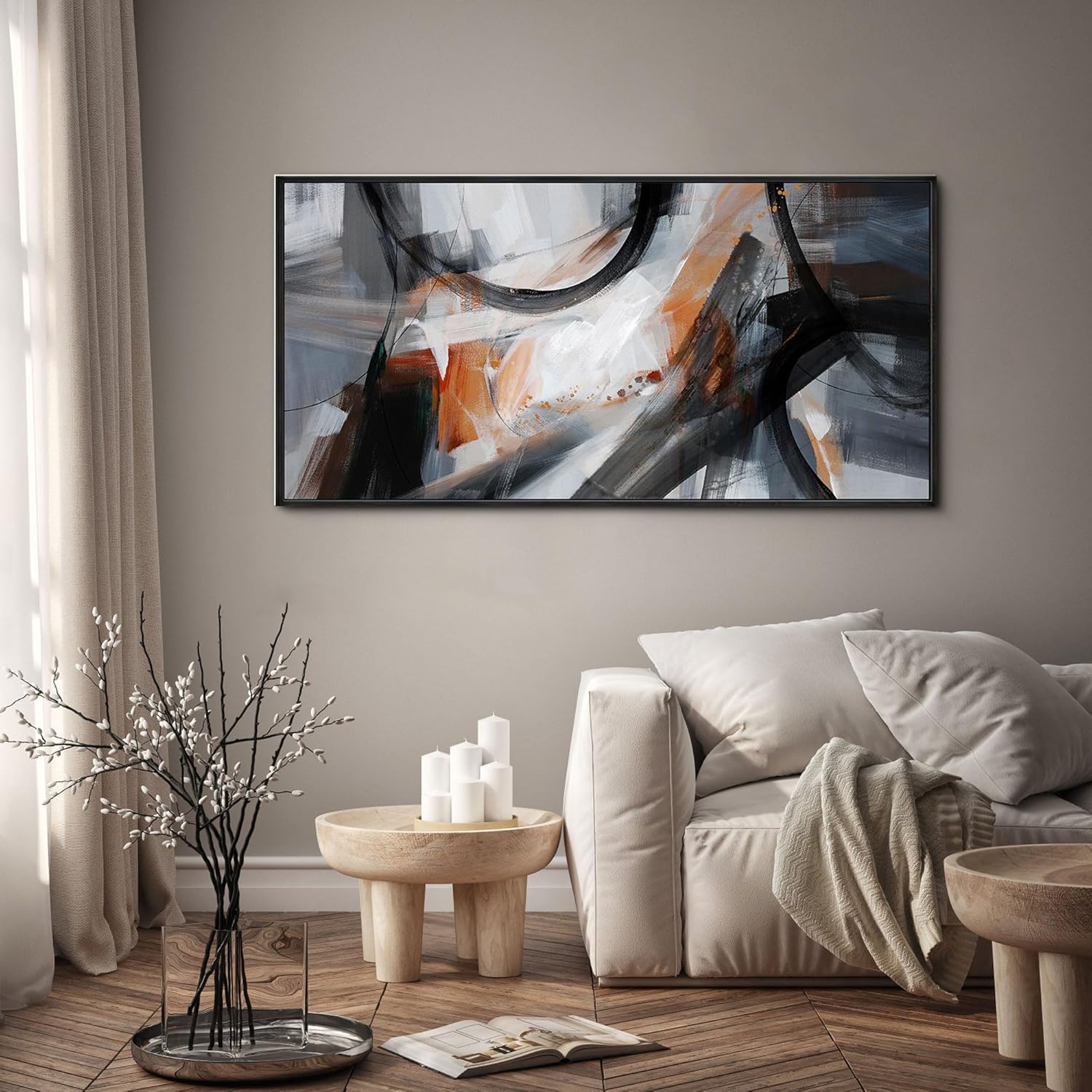 KLAKLA Wall Art for Living Room - Black and Orange Boho Abstract Canvas Framed Wall Decor Office Bedroom Art Modern Large Picture Artwork for Walls Prints Paintings Artwork 48x24 Inches