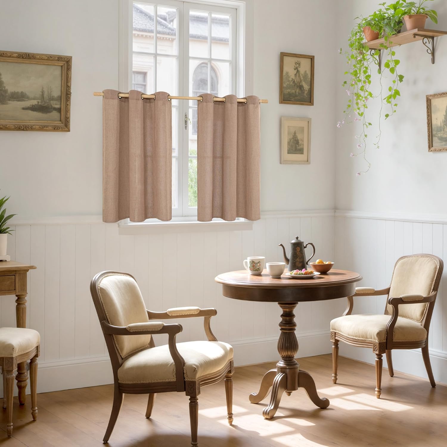 YoungsTex Mocha Linen Kitchen Curtains 40 Inch Length with Grommet, Short Semi Sheer Drapes Light Filtering for Bathroom Cafe Window Fall Decor, 2 Panels, 42 X 40 Inch