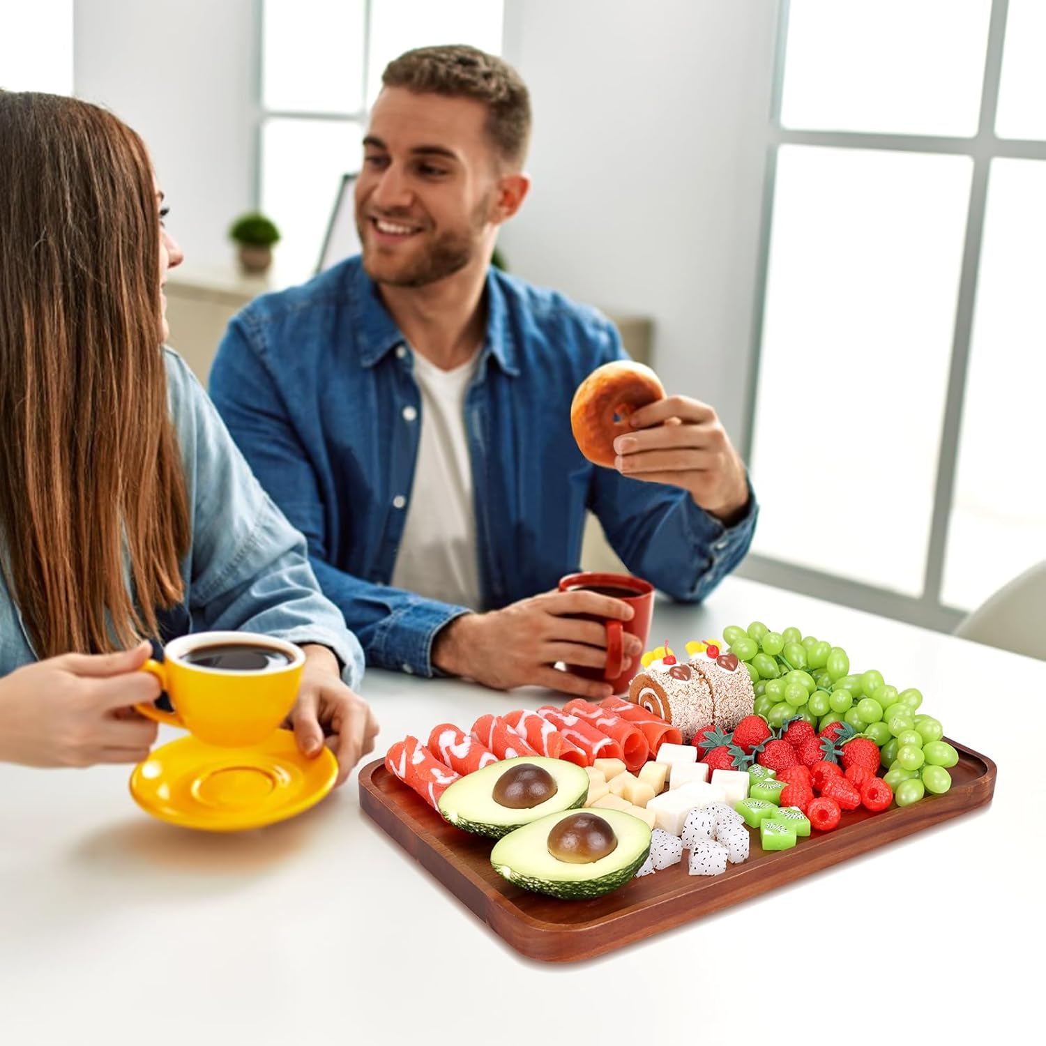 16" X 10" Large Wooden Serving Trays Acacia Wood Charcuterie Boards Rectangular Serving Platters for Cookie, Dessert, Party Food Dish Snack Appetizer Plates Kitchen Platter Tray Cheese Board