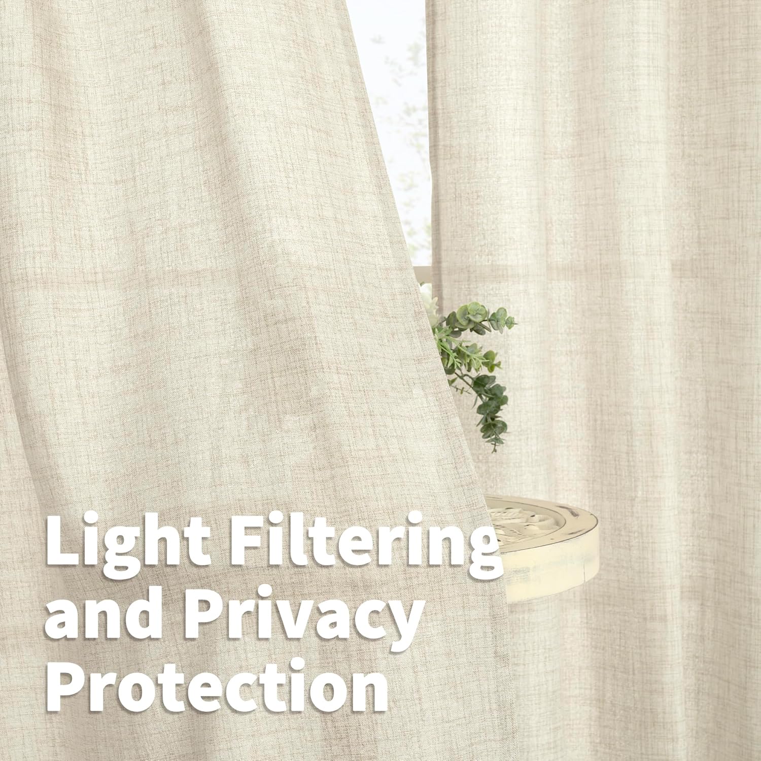 YoungsTex Linen Curtains 80 Inch Length for Living Room 2 Panels, Light Filtering Cream Semi Sheer Window Treatments with Bronze Grommet Privacy for Bedroom Farmhouse Dining, 52 x 80 Inch