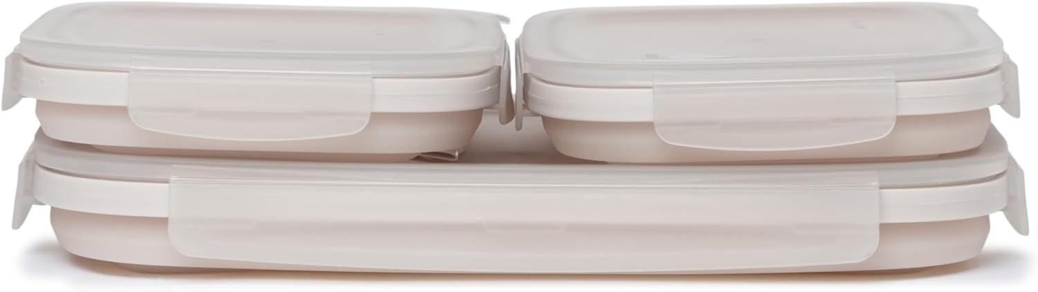 Drip EZ Secondz Collapsible Food Storage Containers (set of 3) - Meal Prep, Leftovers, Lunch, Camping, Hiking - Dishwasher & Microwave Safe - BPA-free Silicone - Locking Lids - Sandstone