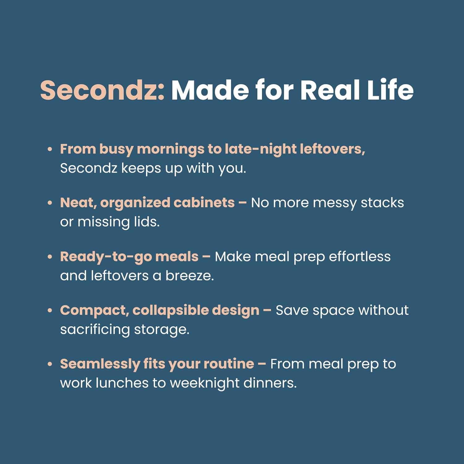 • PREMIUM BPA-FREE SILICONE: Made from high-quality, food-safe silicone, Secondz is durable, flexible, and built to last. Free from harmful chemicals, these containers keep your food safe and fresh, meal after meal.