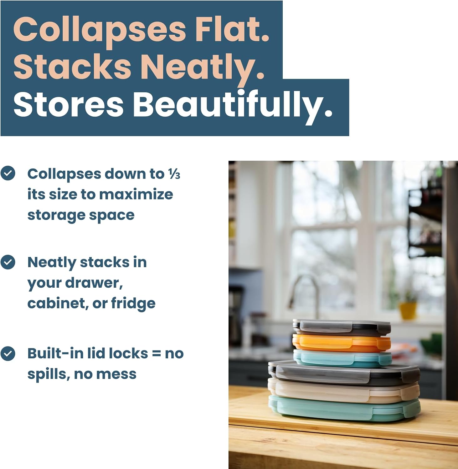 • SAVE 70% CABINET SPACE: Maximize your kitchen storage with Secondz! These collapsible containers shrink down to just a fraction of their size, keeping cabinets neat and organized - perfect for small kitchens, dorms, RVs, and meals on the go.