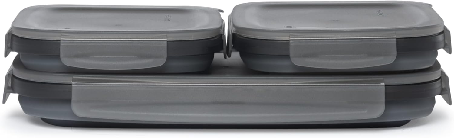 Drip EZ Secondz Collapsible Food Storage Containers (set of 3) - Meal Prep, Leftovers, Lunch, Camping, Hiking - Dishwasher & Microwave Safe - BPA-free Silicone - Locking Lids - Charcoal