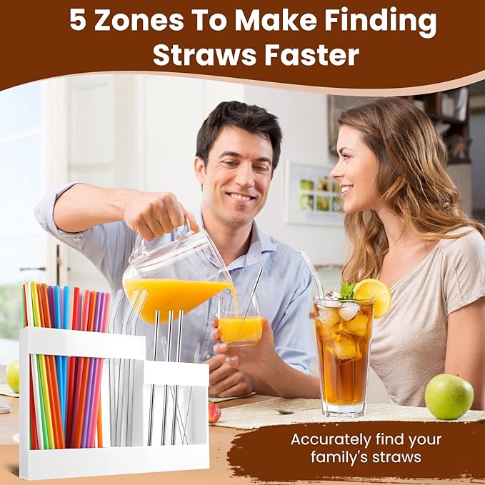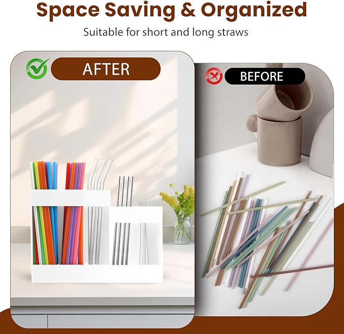 • Clutter-Free Design: The countertop straw organizer eliminates messy drawers by providing a designated space for all your straws, enhancing your kitchen's aesthetic appeal