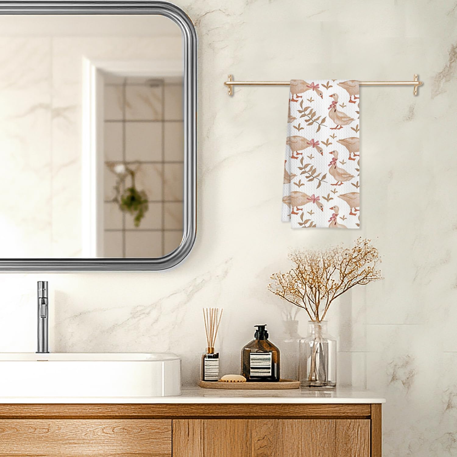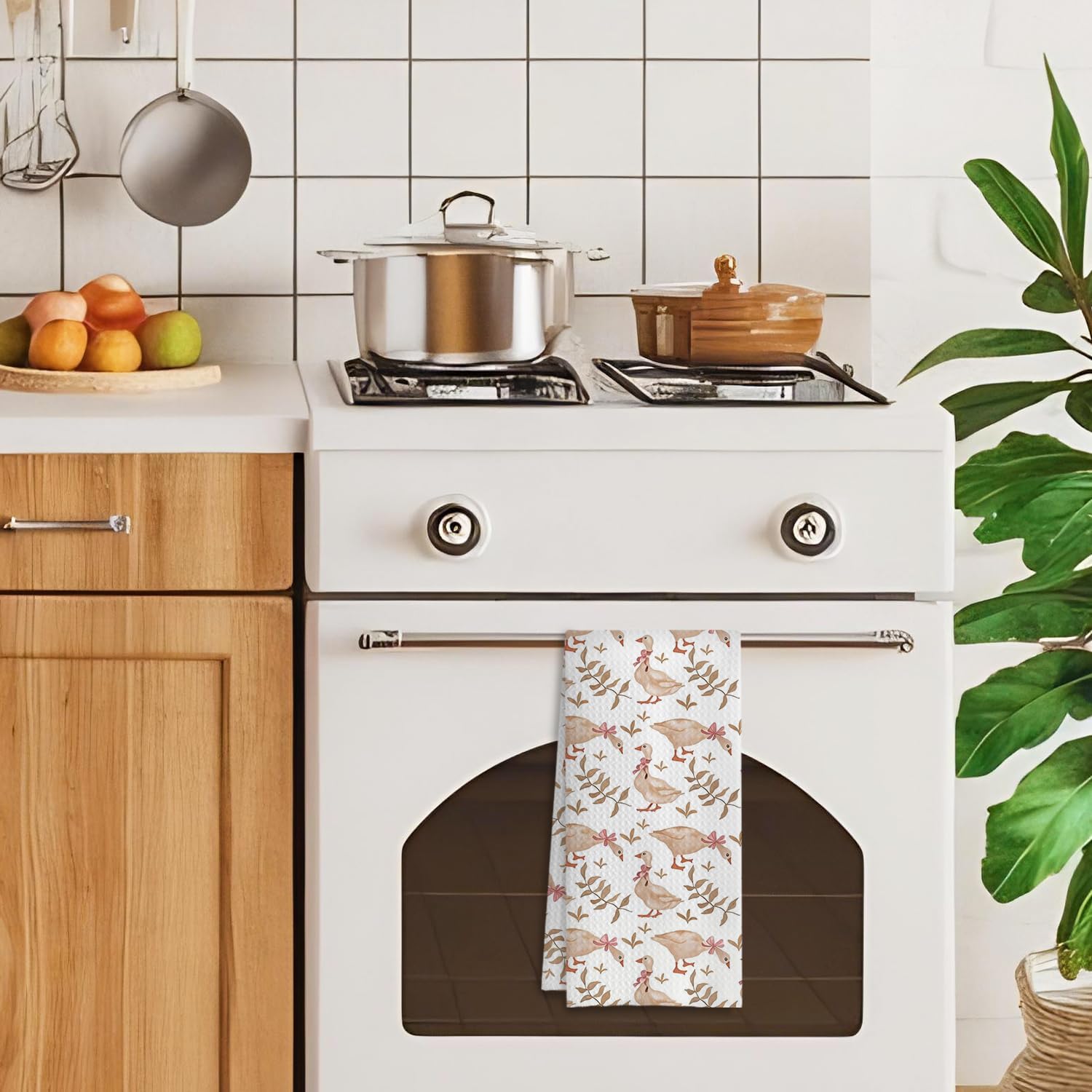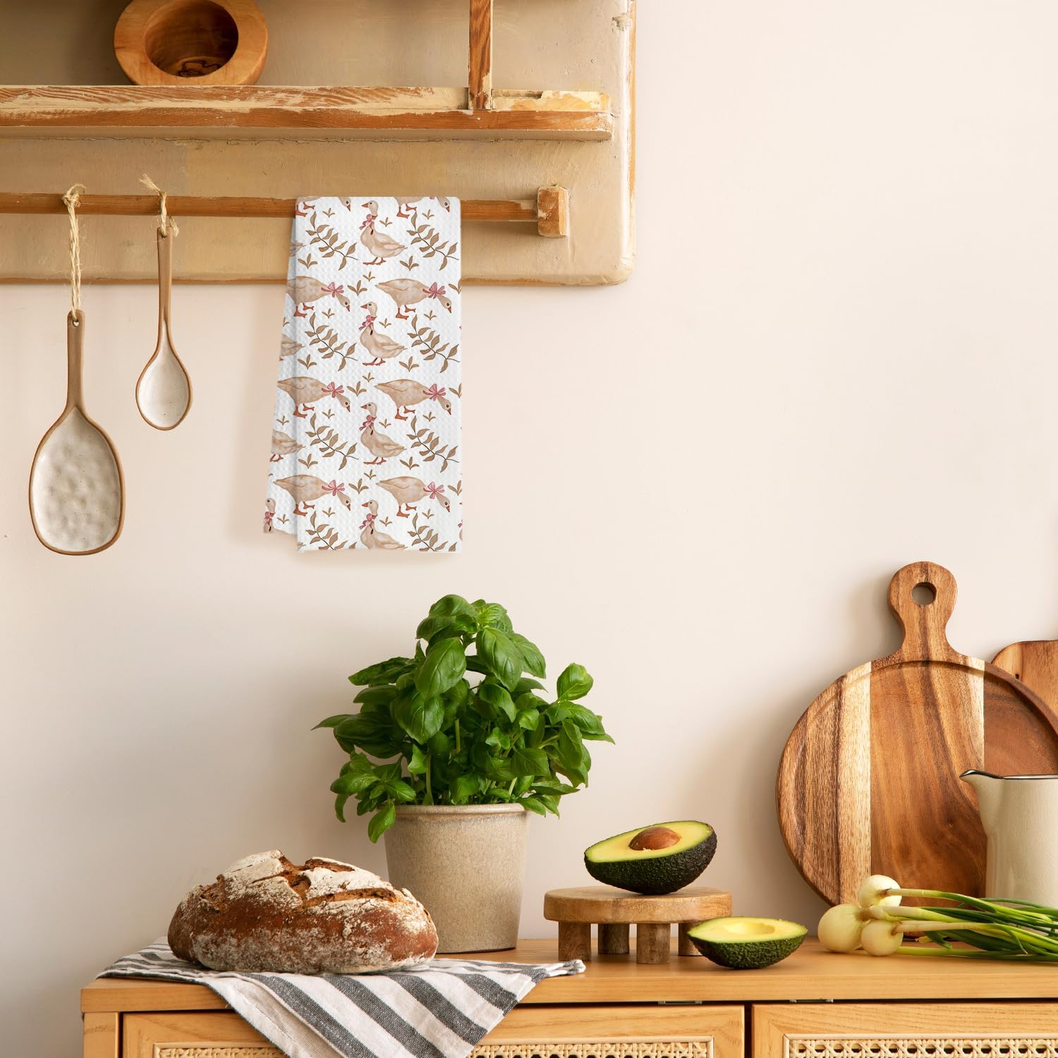 Coquette Pink Bow Silly Goose Kitchen Towels, Rustic Botanical Goose Decorative Hand Towels for Bathroom, Cottagecore Farm Animal Dish Tea Towels for Kitchen Decor, 16x24 Inches