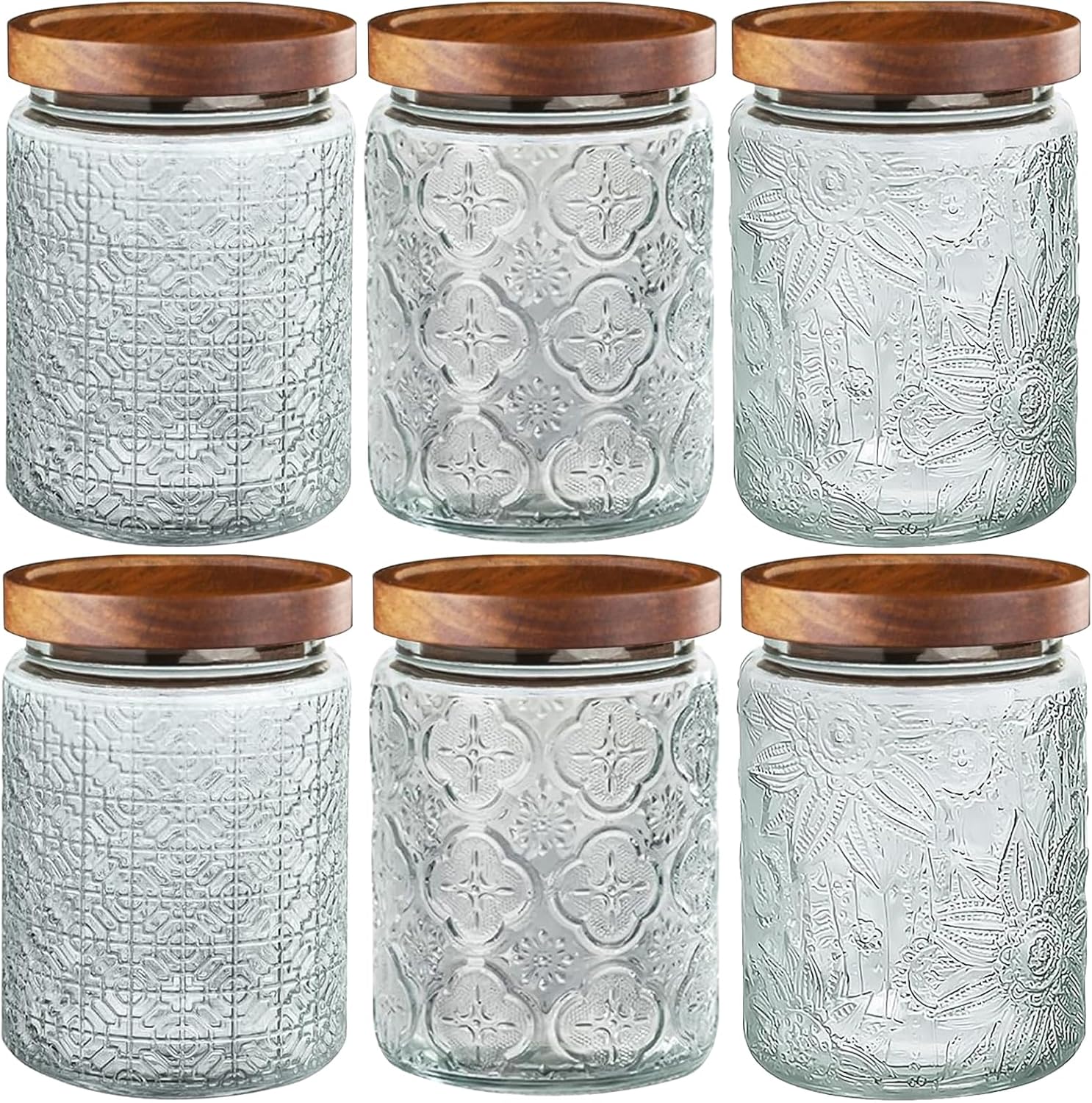 6-Pack 24 OZ Vintage Glass Jar with Lid, Airtight Food Storage Canisters with Bamboo for Kitchen Counter Pantry, Ideal for Coffee, Candy, Tea, Oats, Sugar, Cookies Decorative Jars
