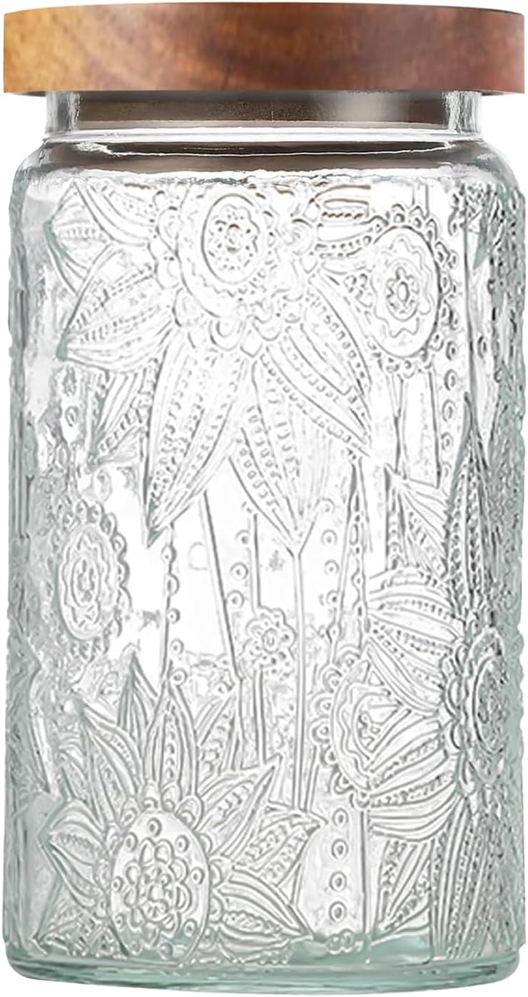 34 OZ Vintage Glass Jar with Lid, Airtight Food Storage Canisters with Bamboo for Kitchen Counter Pantry, Ideal for Coffee, Candy, Tea, Oats, Sugar, Cookies Decorative Jars-Sunflower