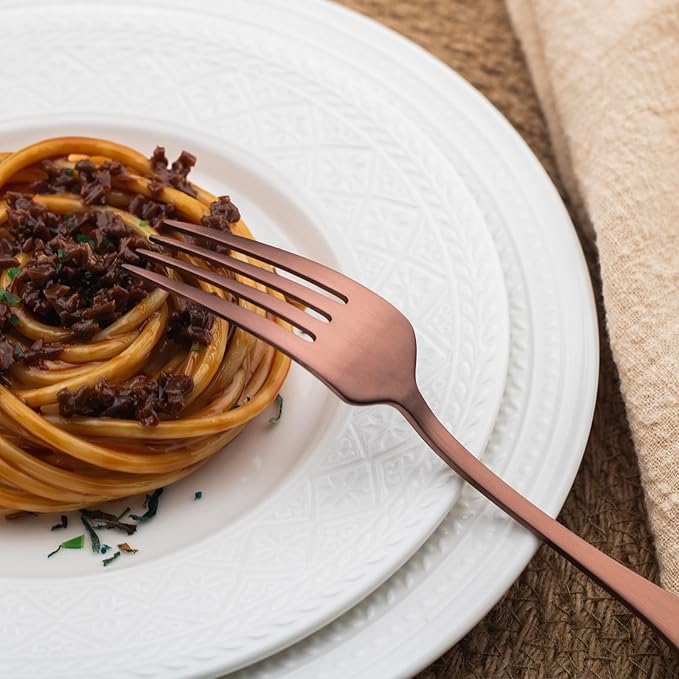 Alata Kate Rose Gold Satin 40-Piece Silverware Set,Service for 8,Stainless Steel Flatware Set, Matte Polished Cutlery Set,Dishwasher Safe