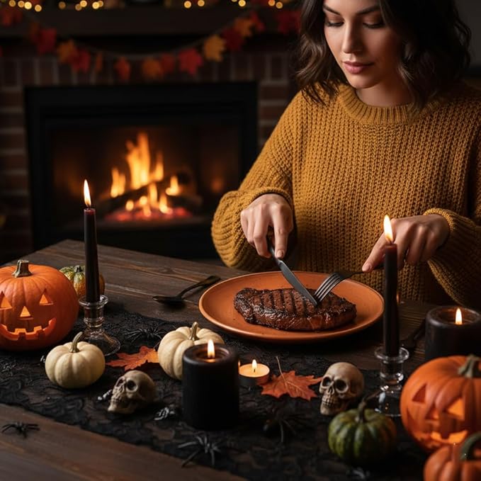 Alata Kate Black Satin 40-Piece Silverware Set, Service for 8, Stainless Steel Flatware Set, Matte Polished Cutlery Set, Dishwasher Safe