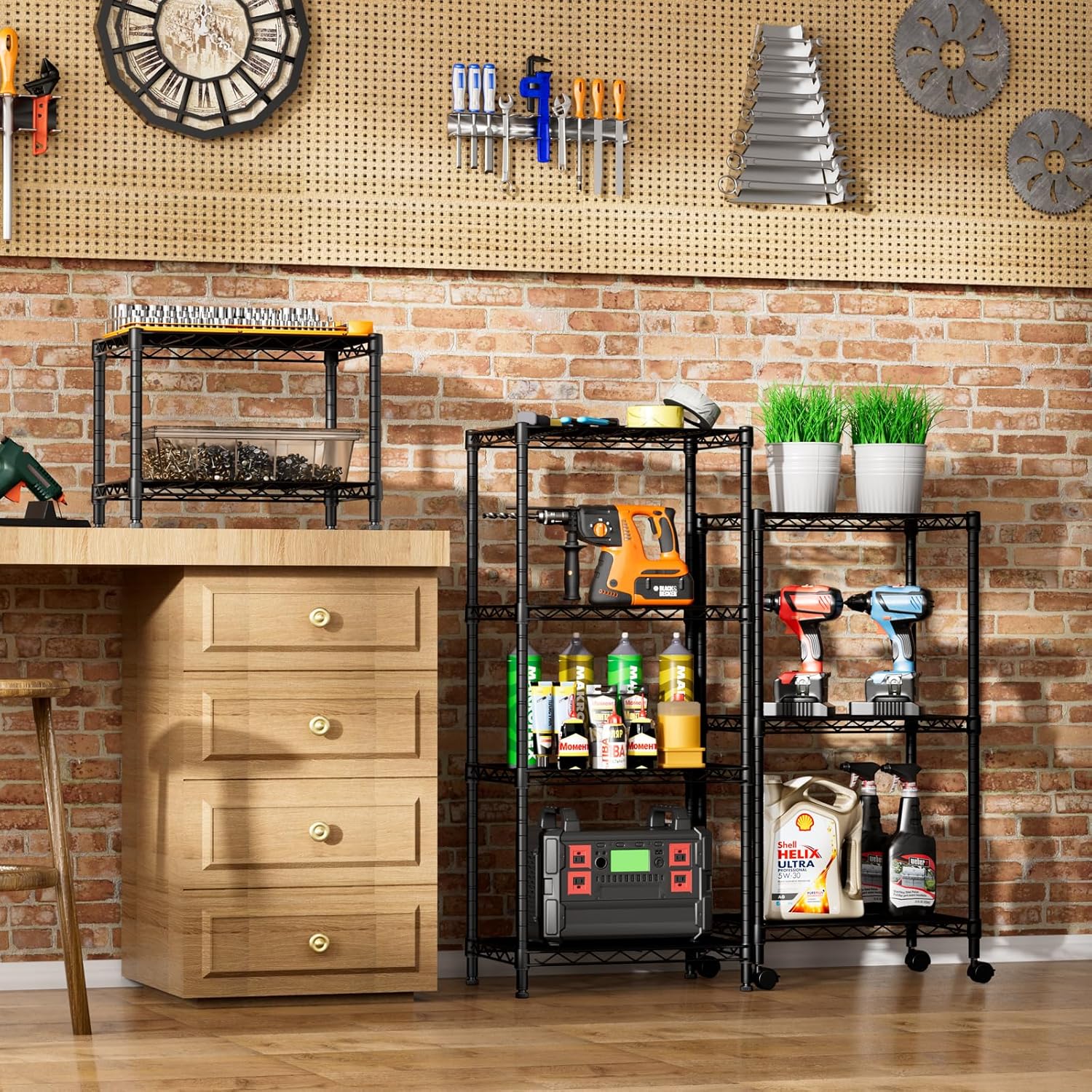 • Convenient Home Storage: Metal wire shelves with adjustable spacing make perfect for narrow spaces or room corners such as kitchens, bathrooms, laundry rooms, balconies, garages, entries, or offices.