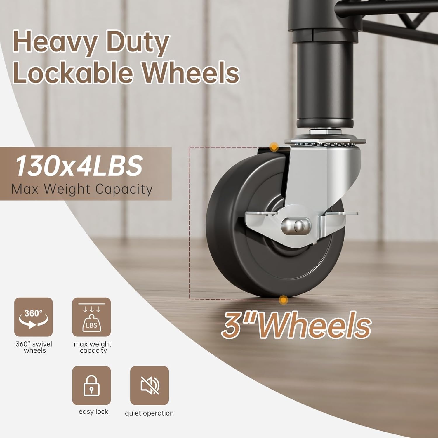 • Convenient Home Storage: Metal wire shelves with adjustable spacing make perfect for narrow spaces or room corners such as kitchens, bathrooms, laundry rooms, balconies, garages, entries, or offices.