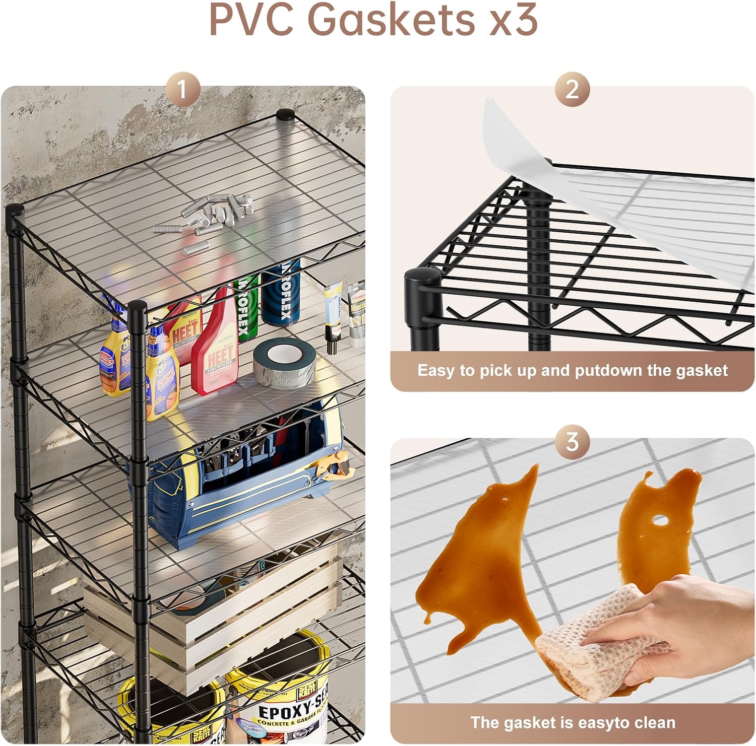 • Rustproof: This shelving has been specially coated to prevent rust or corrosion. You can rest assured to place it in your kitchen or bathroom shelves laundry room organization and storage