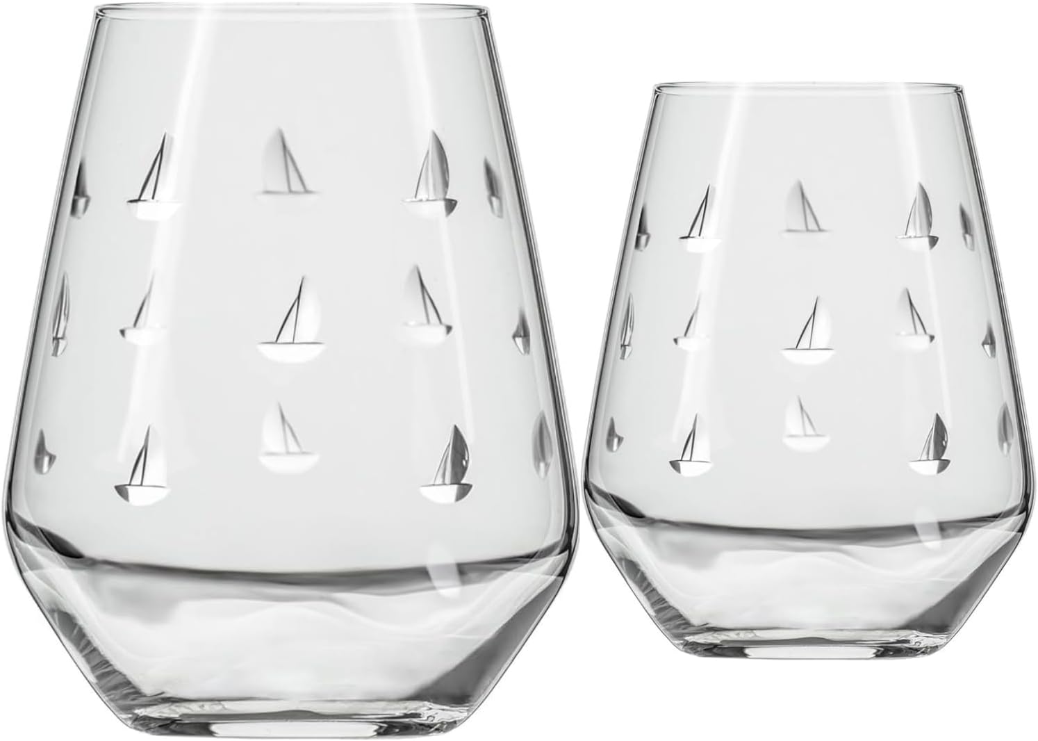 Rolf Glass Sailing Stemless Wine Tumbler 18 ounce | Stemless Wine Glasses Set of 2 | Lead-Free Crystal Glass | Diamond-Wheel Engraved | Proudly Made in the USA