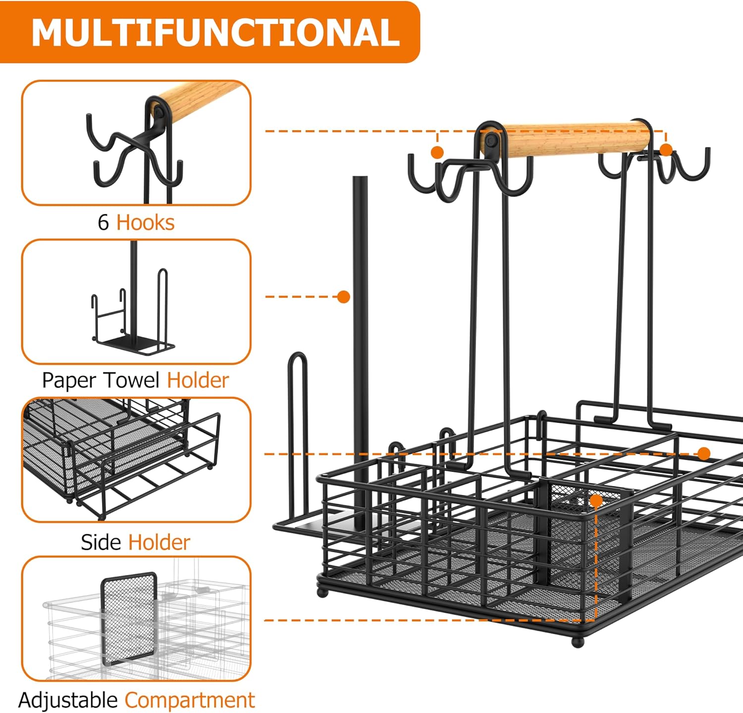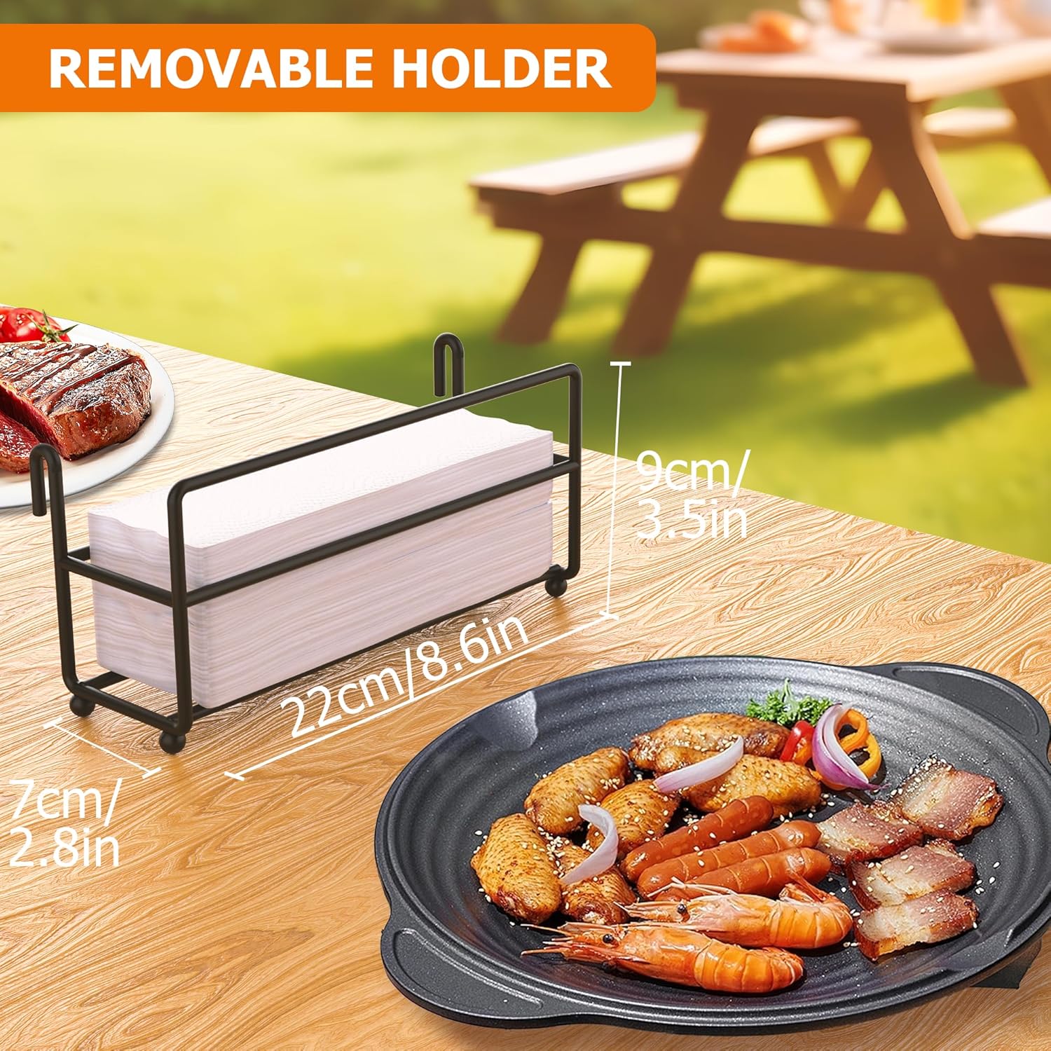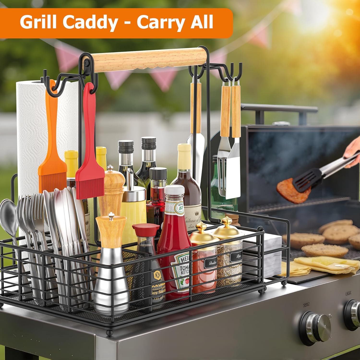 Large Grill and Griddle Caddy with Paper Towel Holder, Side Hooks, Utensil Holder, Wooden Handle for Outdoor Kitchen, Picnic, RV, Patio, Camping, Tailgate BBQ Tools & Grilling Accessories