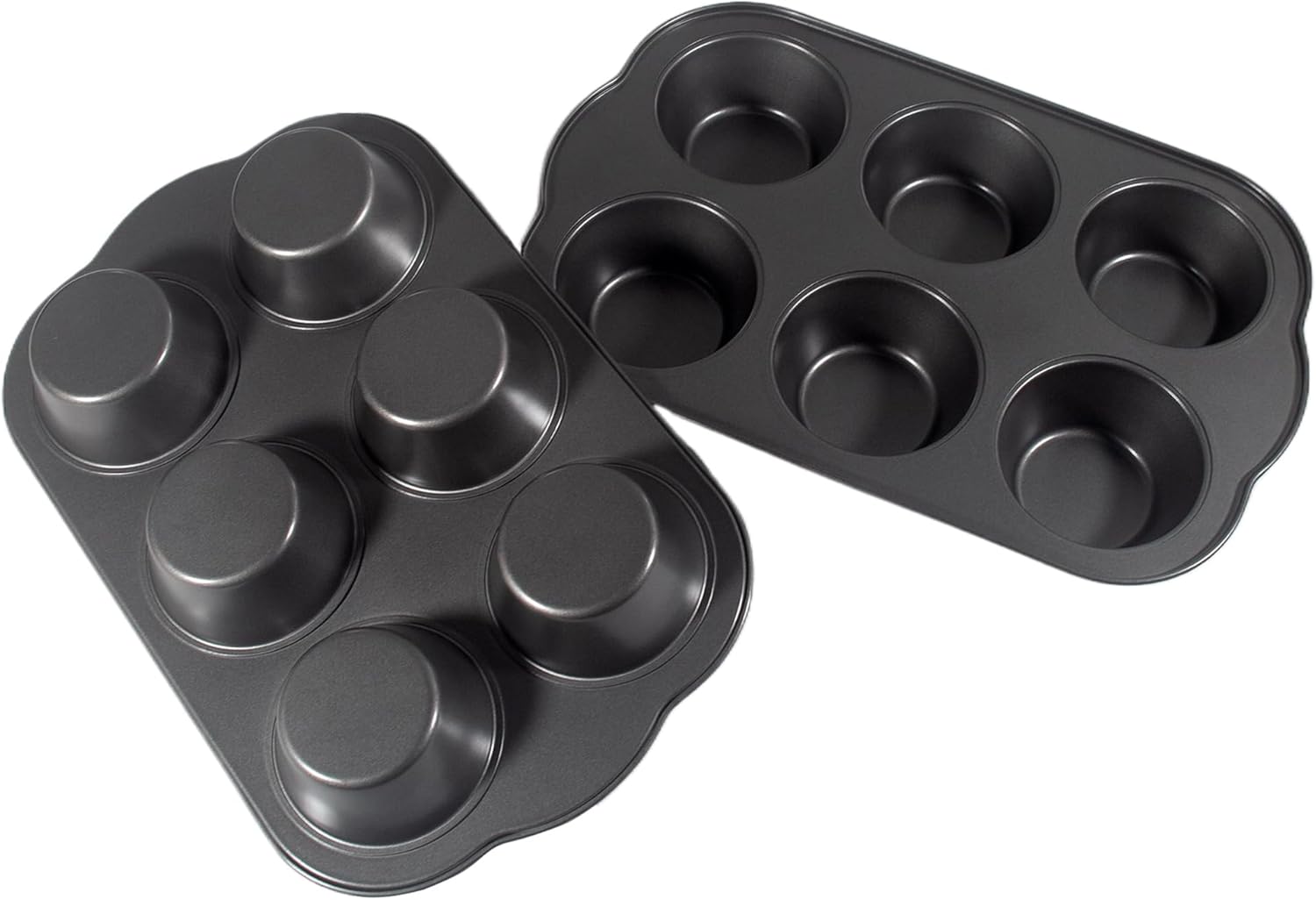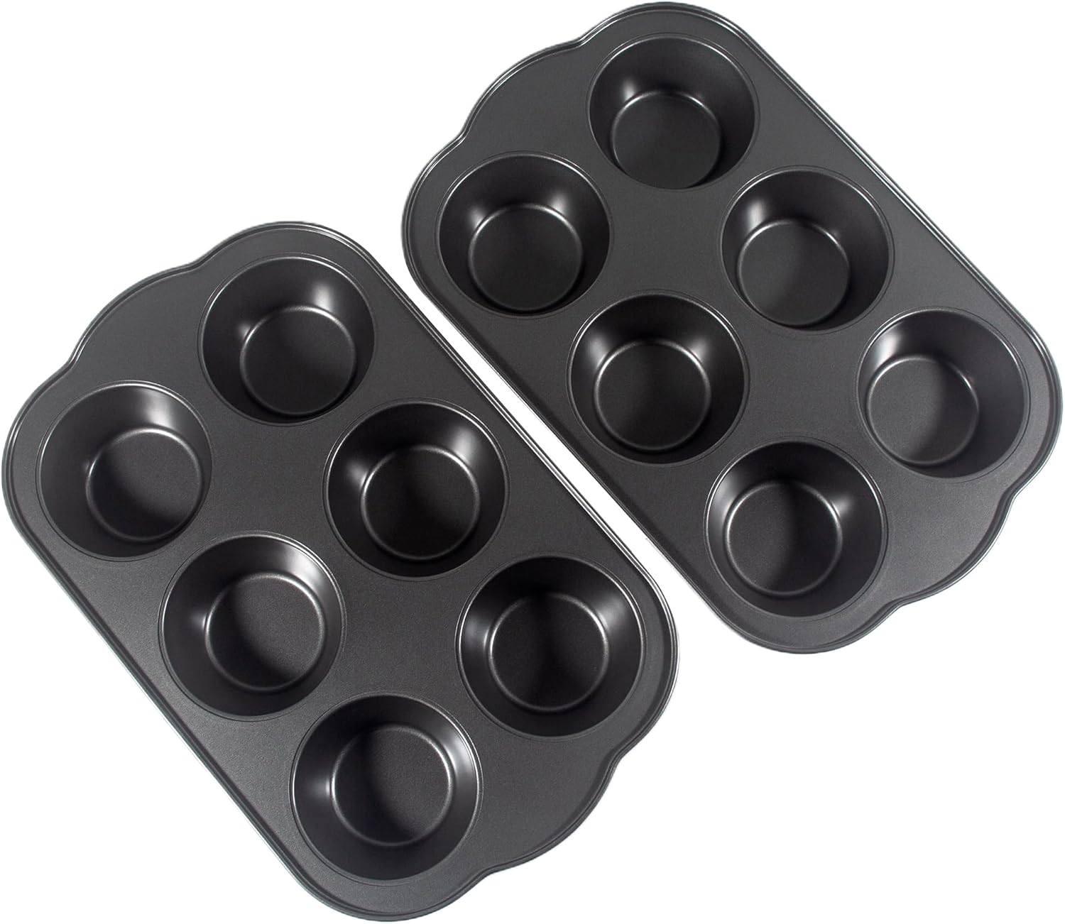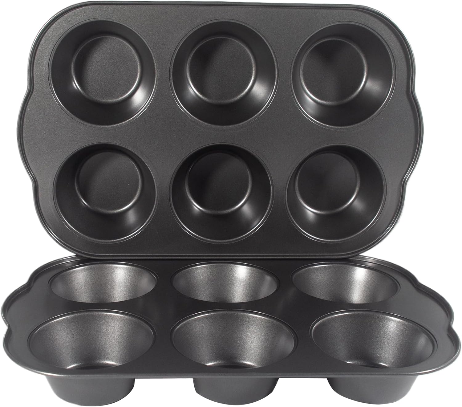Non-Stick Jumbo Muffin Pans, 3.5" 6-Cup Set of 2 Baking Pans, Heavy Duty Carbon Steel Tins for Extra-large Muffins & Cupcakes
