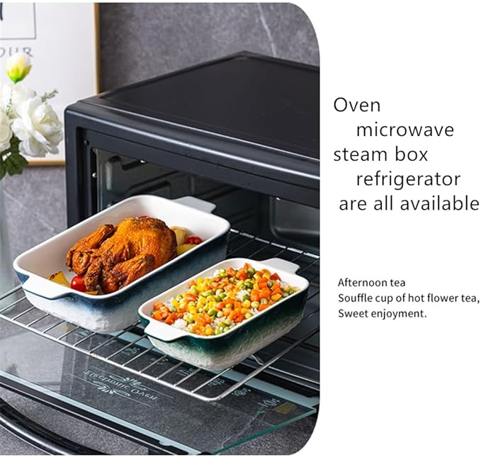 • Versatile Bakeware Set: Includes a rectangular baking pan, a wide surface pan, and a pan with dual handles for easy handling.