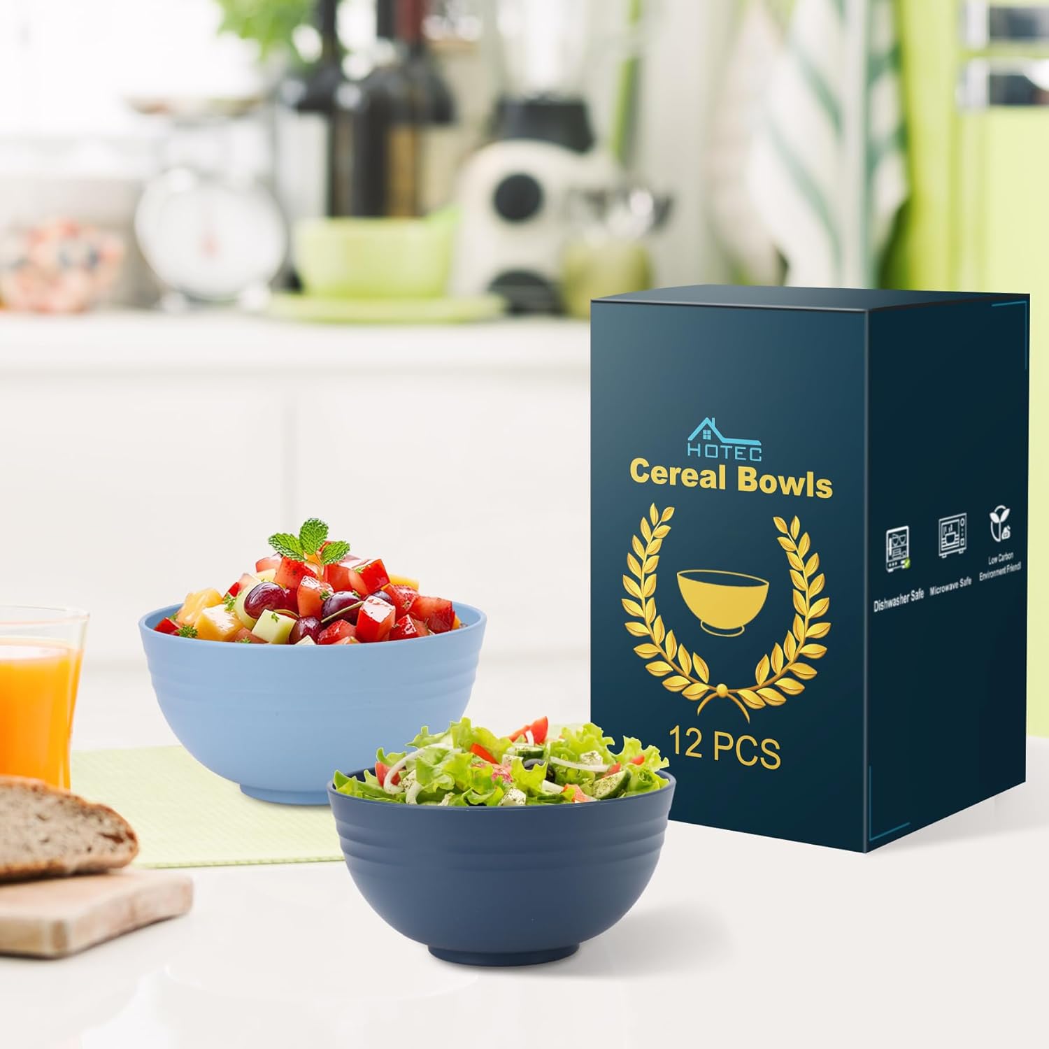 HOTEC 12-PACK BPA Free Unbreakable Plastic Cereal Bowls - Microwave & Dishwasher Safe Soup Salad Camping Bowls, 26OZ, Multicolor