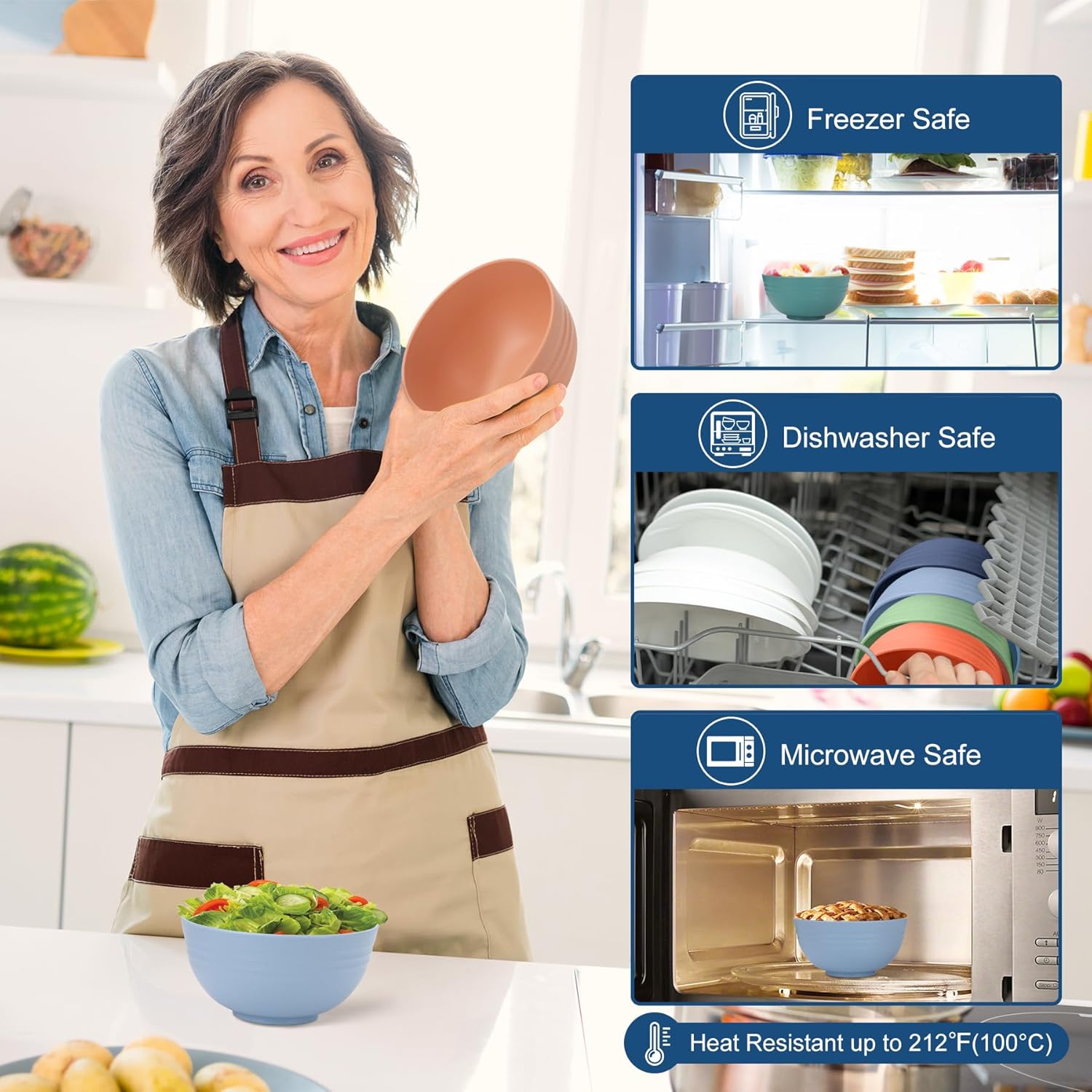 • 【Microwave & Dishwasher Safe】: bowls are designed to be safe for both microwave and dishwasher use. When using the microwave, we recommend not exceeding 212°F (100°C) and avoiding prolonged exposure to high temperatures. Cleaning is a breeze whether you choose to use the dishwasher or hand wash.
