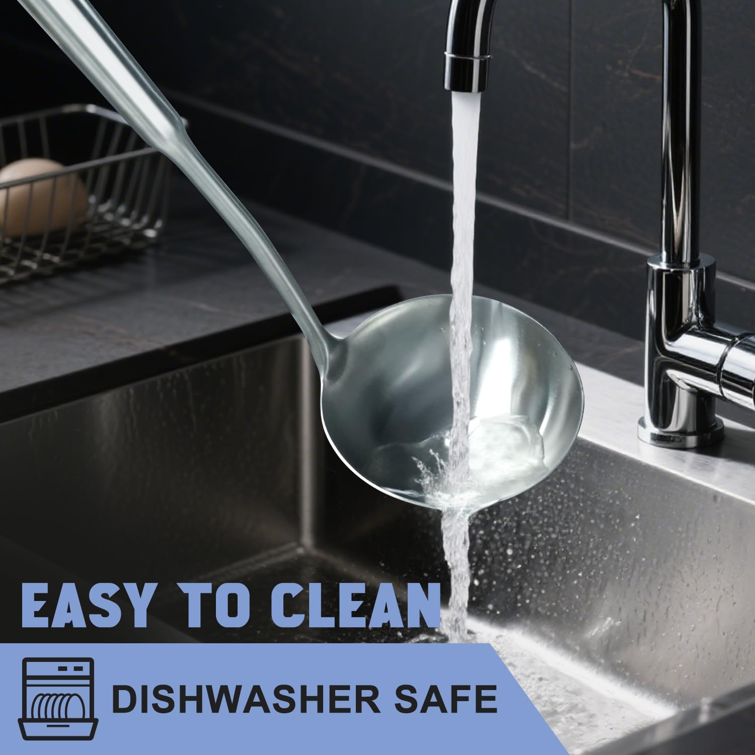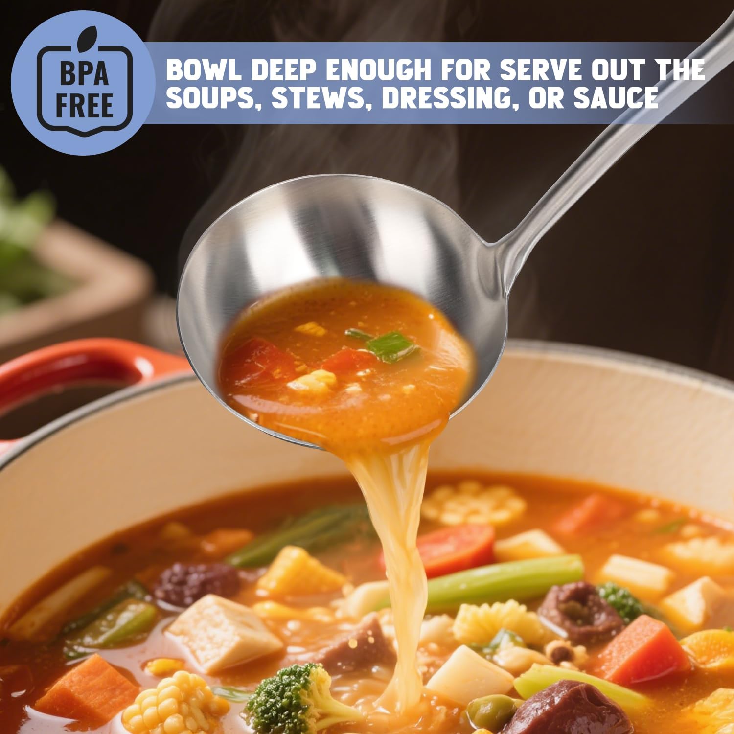 • Extra-Long 13.7-Inch Soup Spoon – The long handle design keeps your hands safe from heat, steam, and splashes. Ideal for cooking and serving from deep pots, stockpots, or soup kettles.