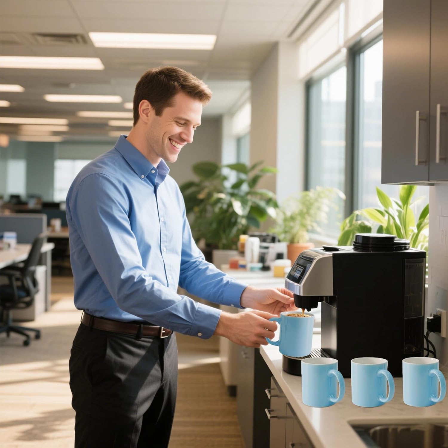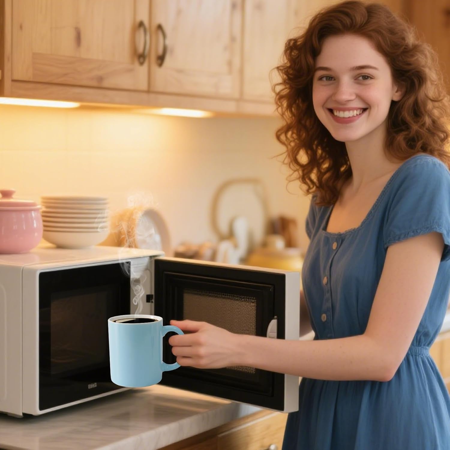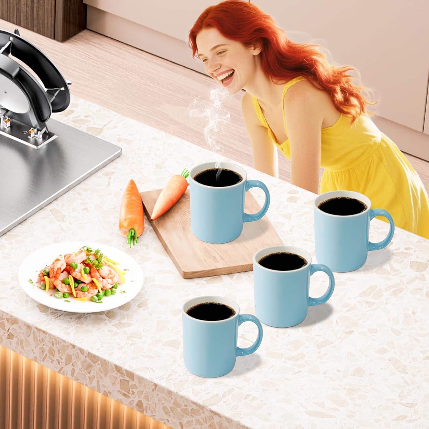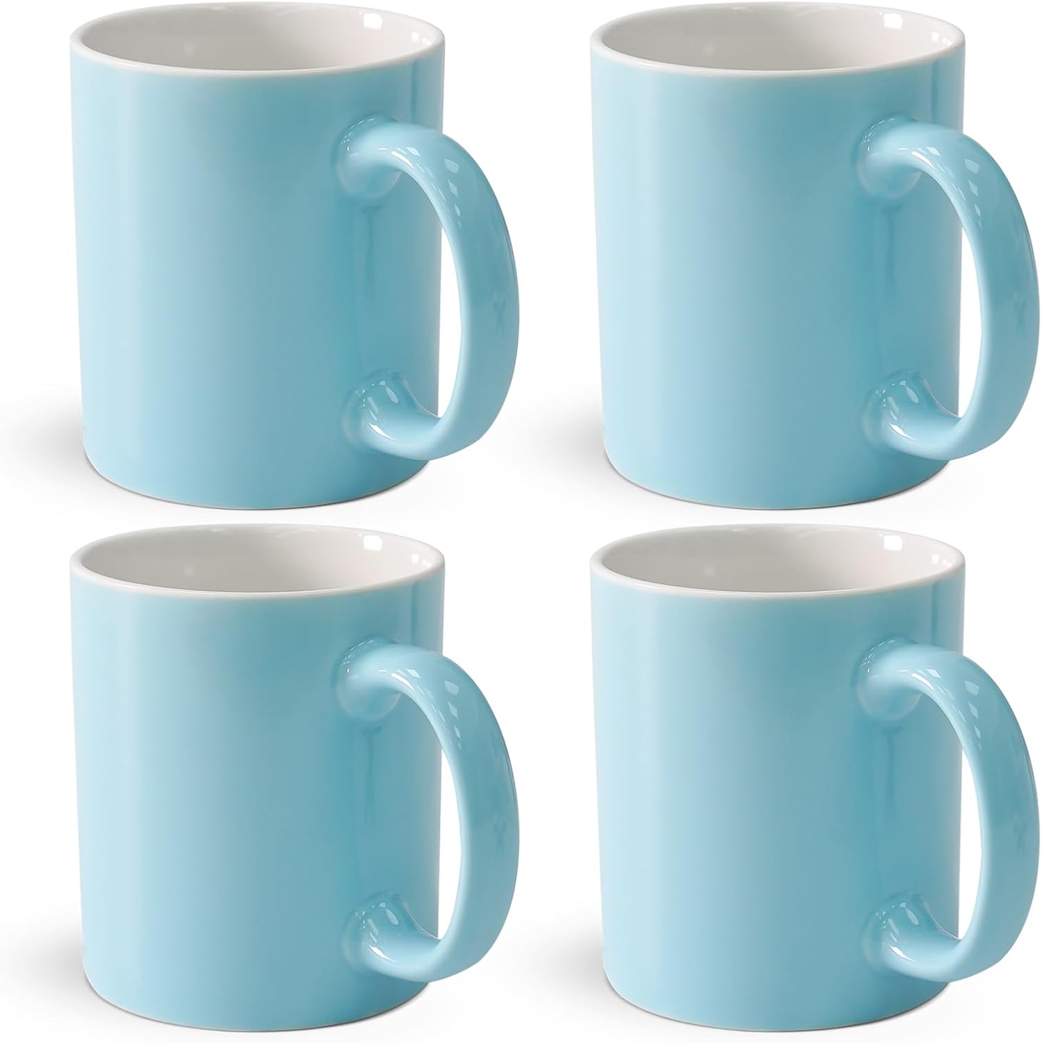12 oz Cup (4pcs), Plain Gloss Light Blue Ceramic Coffee Mug for Milk Tea, Set of 4