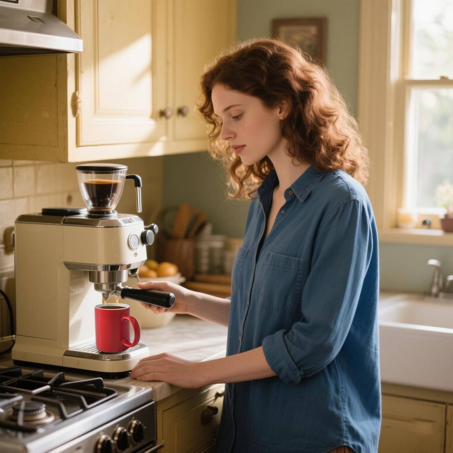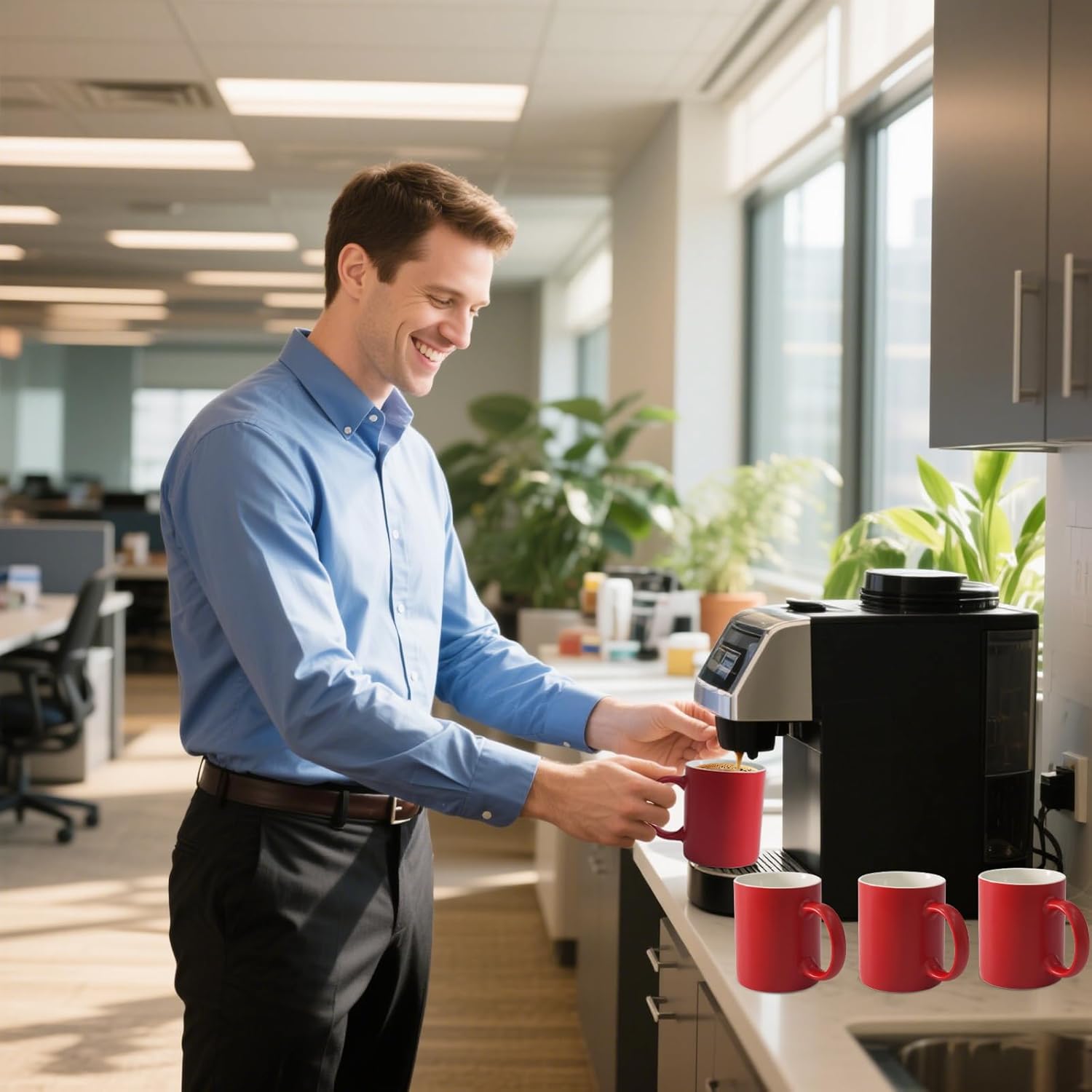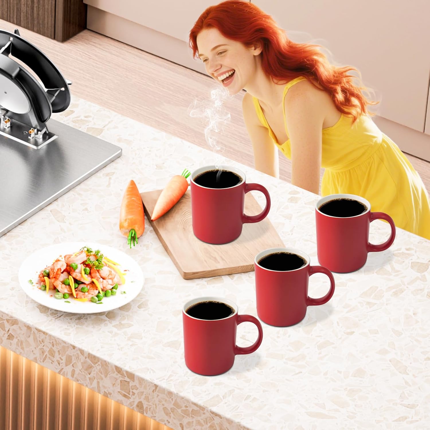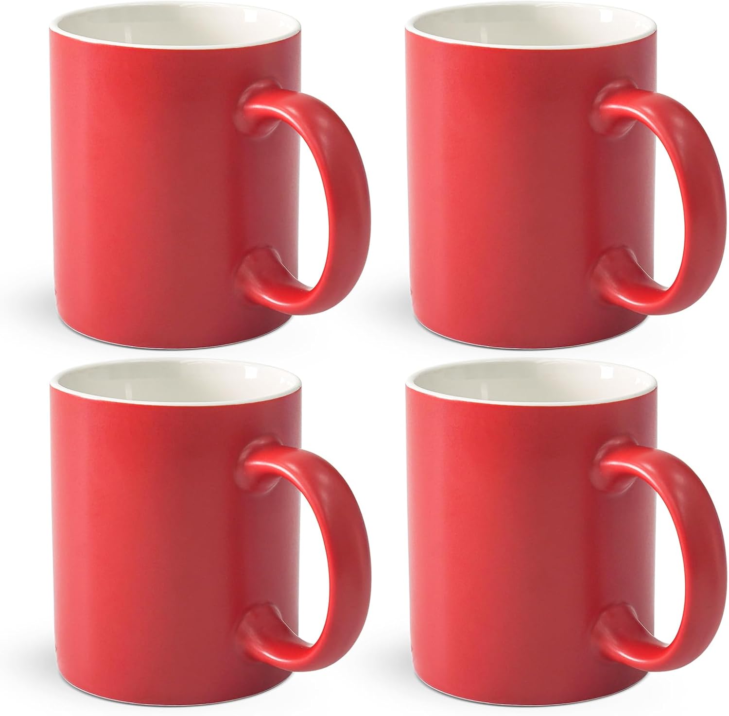 12 oz Cup (4pcs), Red Ceramic Coffee Mug for Milk Tea, Set of 4