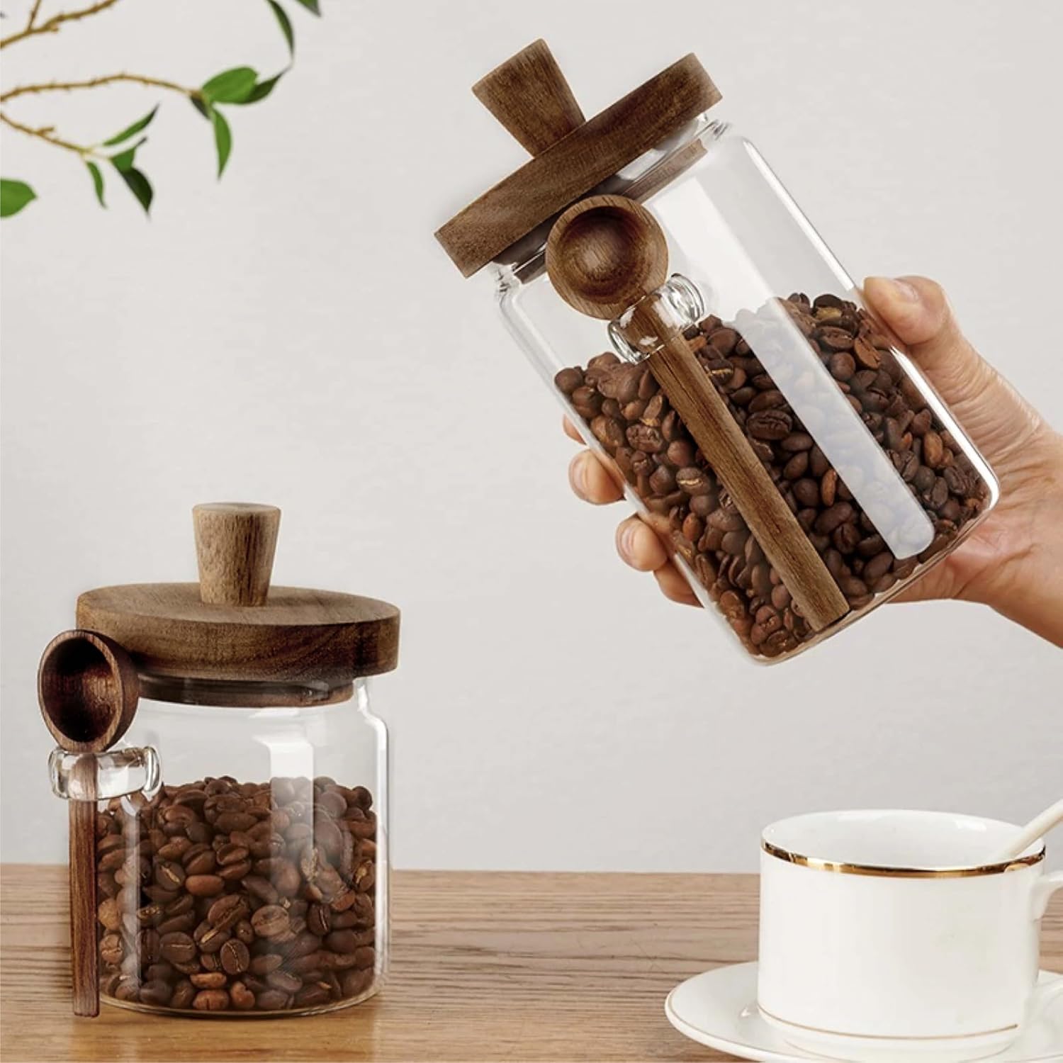Glass Food Storage Jar with Wooden Lid and Spoon, Airtight Container for Cereals, Cookies, Snacks, Kitchen Canister Set (Large(750ml/25.3oz))