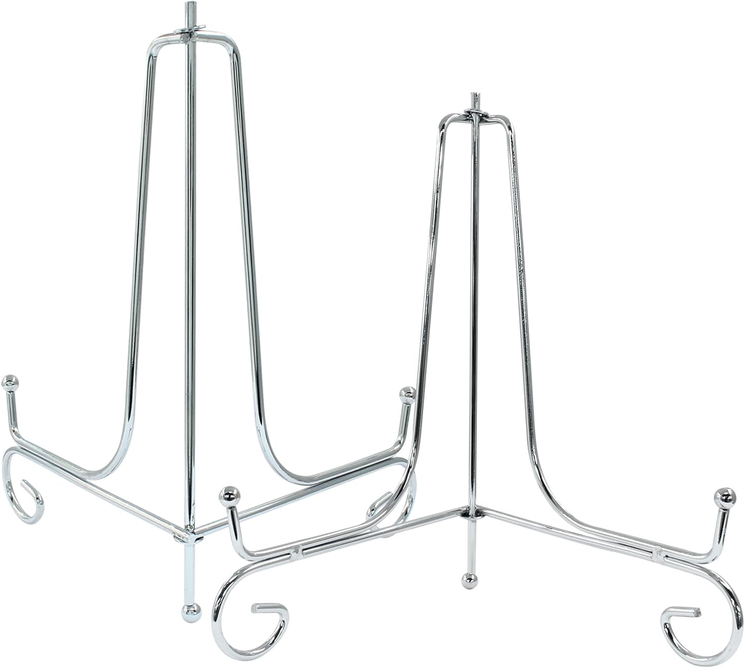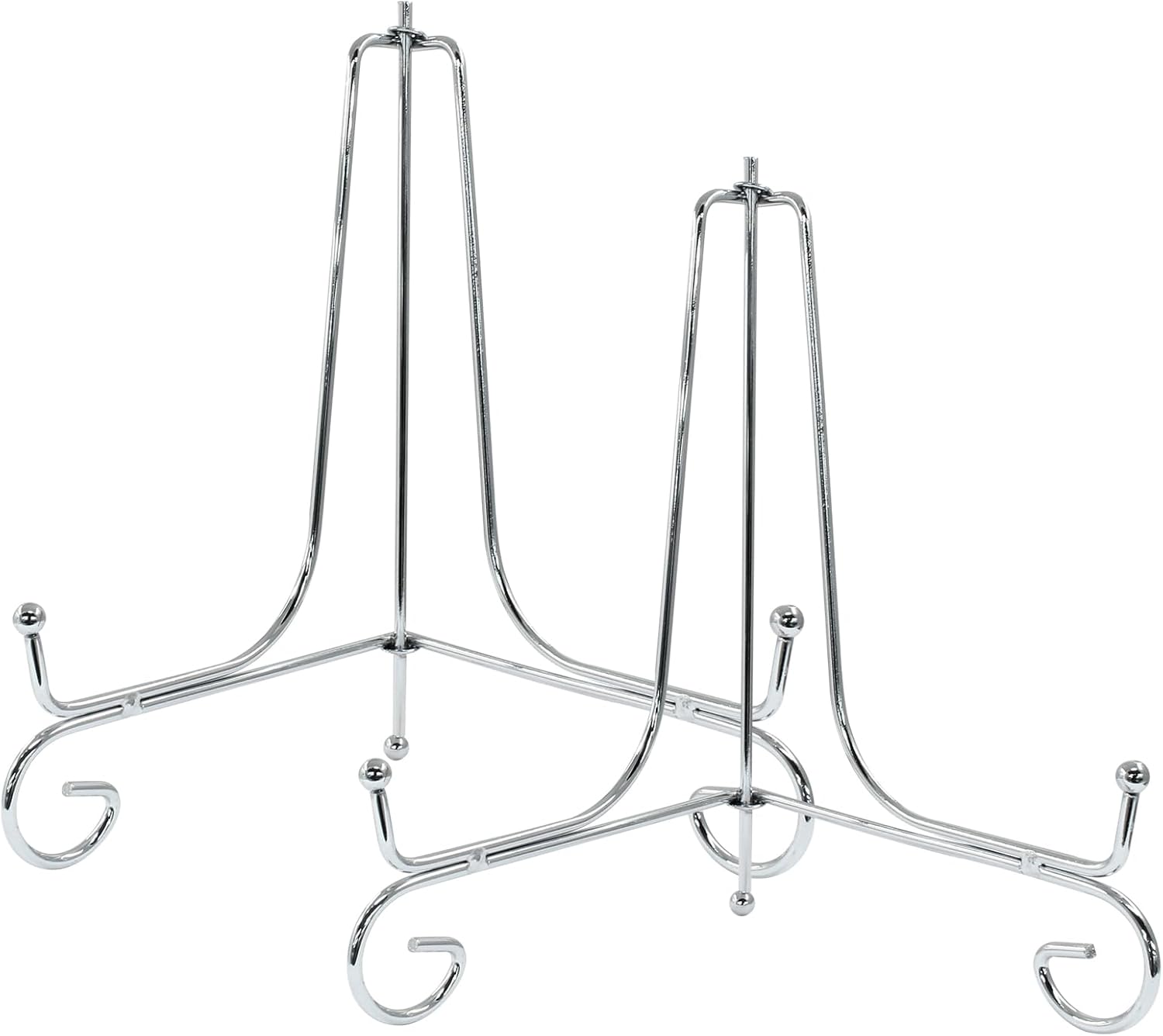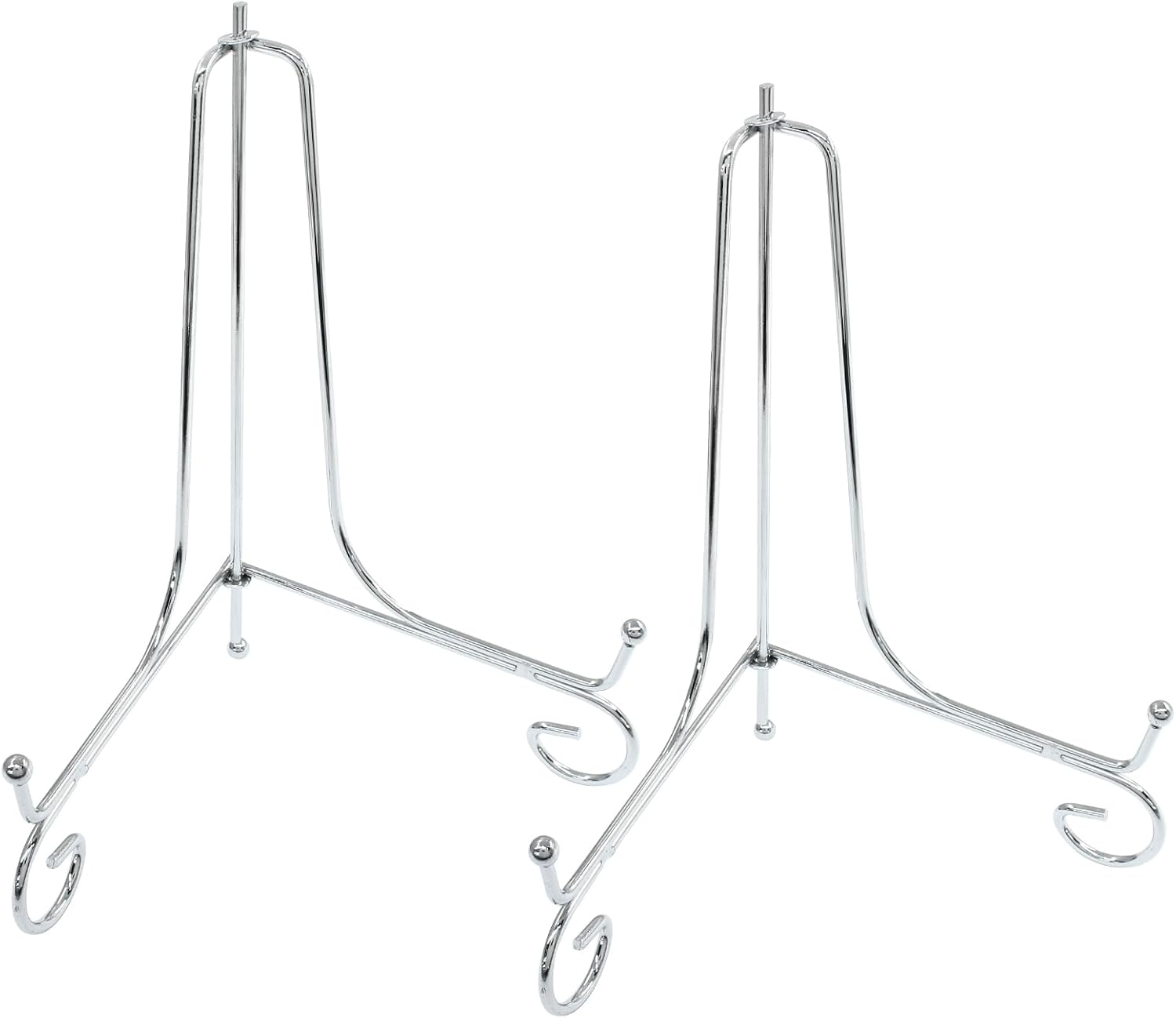 Hordion 2 Pack Plate Stand, 8 Inch Silver Iron Easel Photo Display Stand Plate Holder for Picture Frame Book Tabletop Art Platter