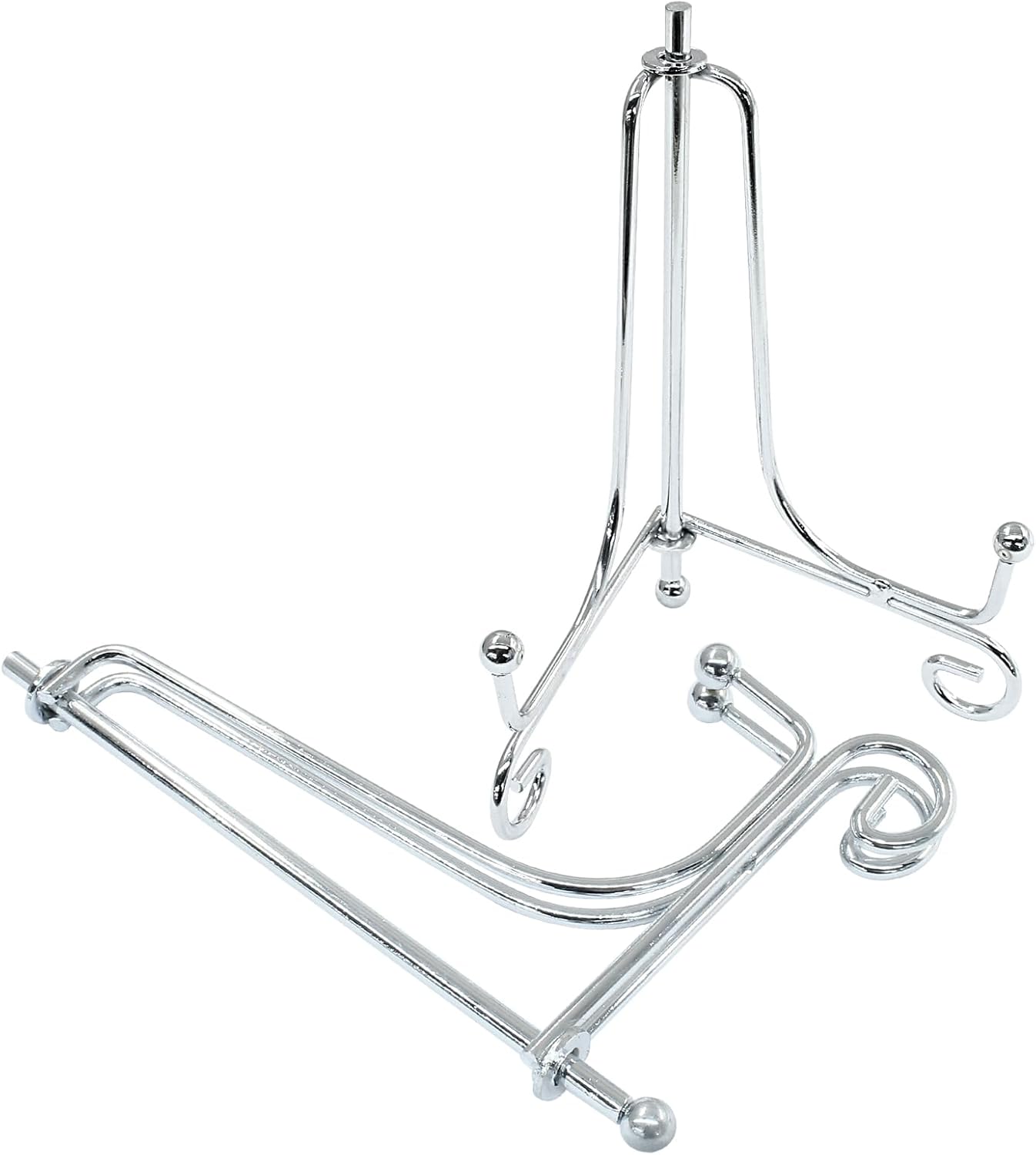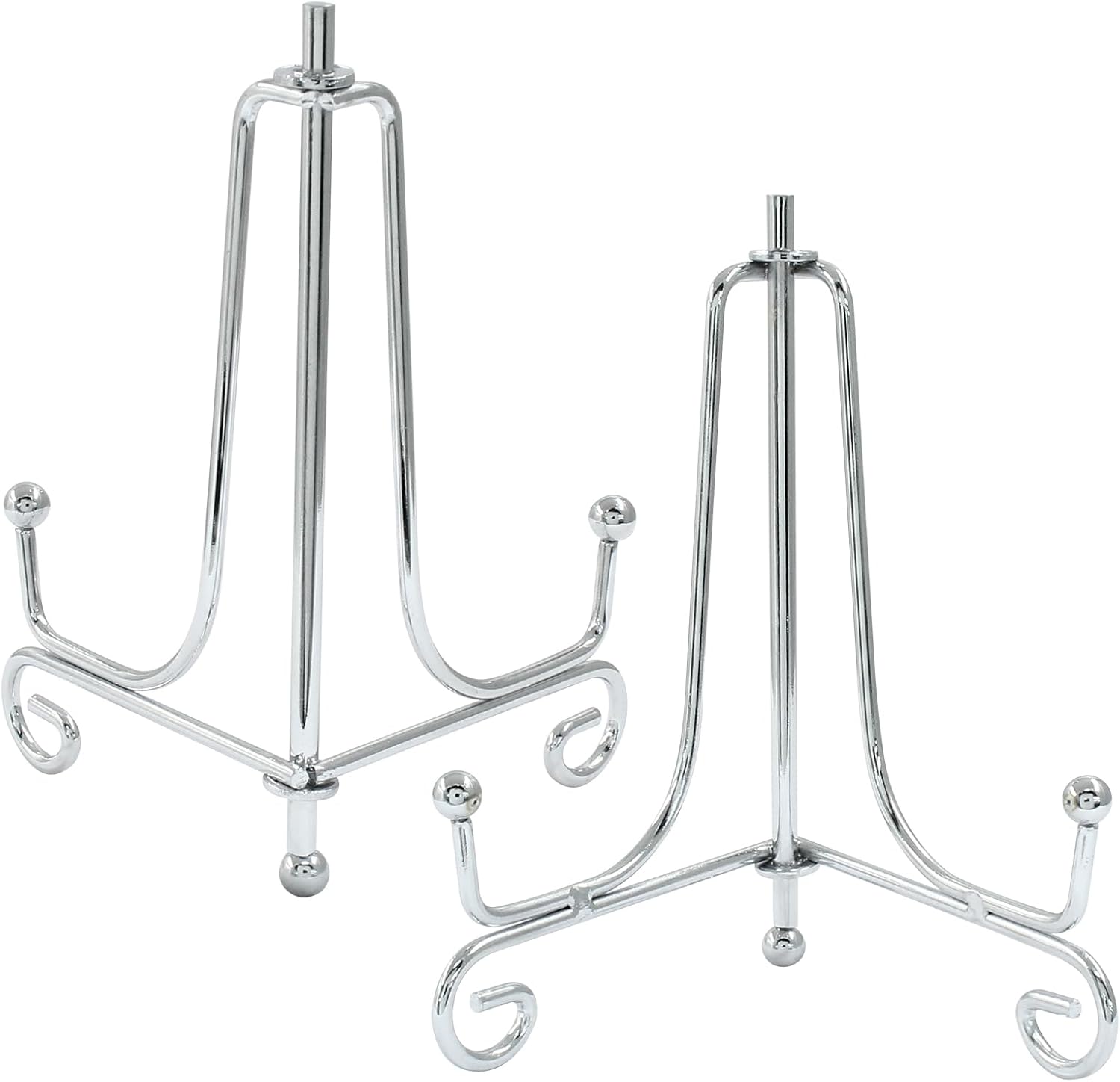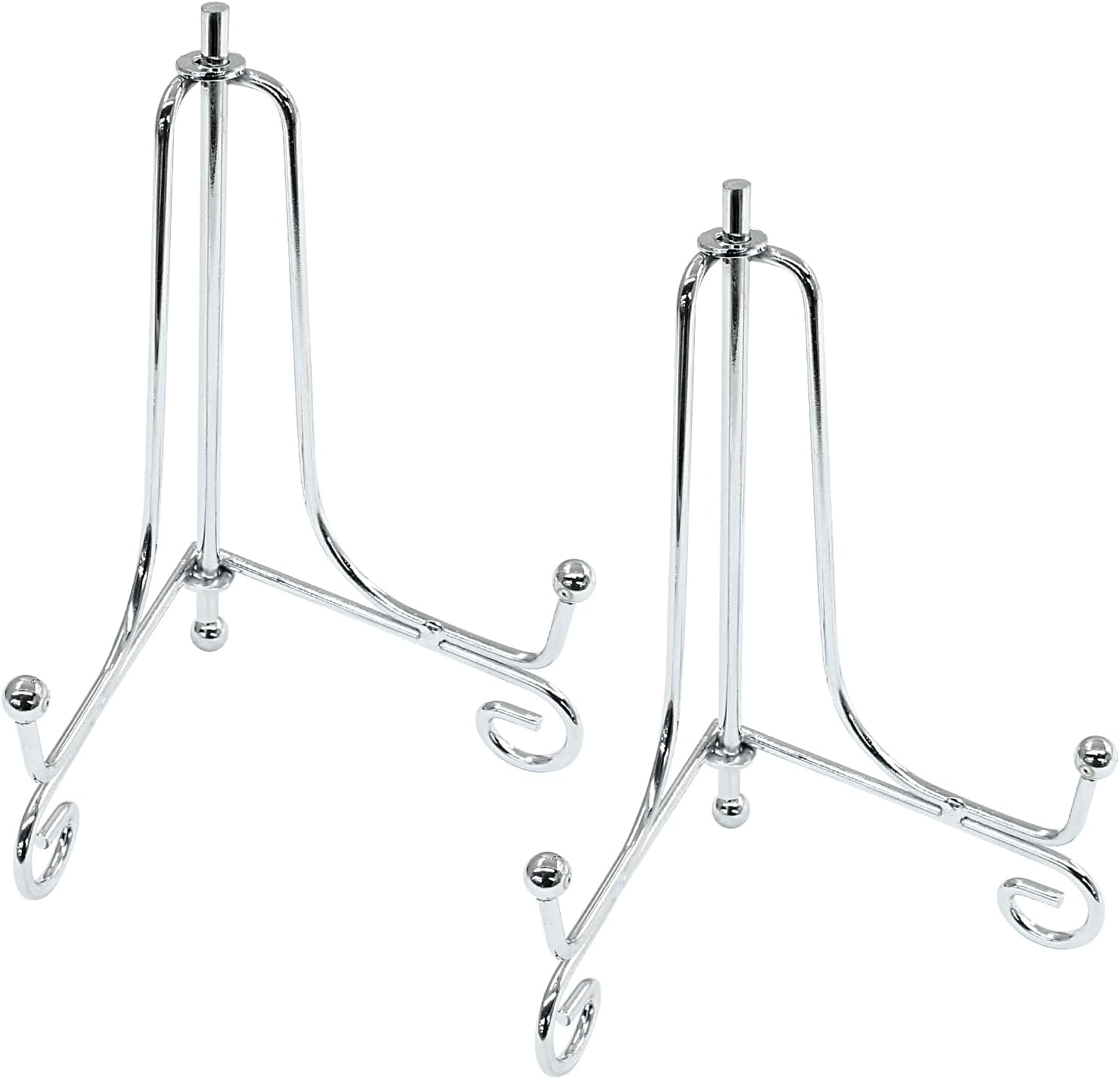 Hordion 2 Pack Plate Stand, 4 Inch Silver Iron Easel Photo Display Stand Plate Holder for Picture Frame Book Tabletop Art Platter