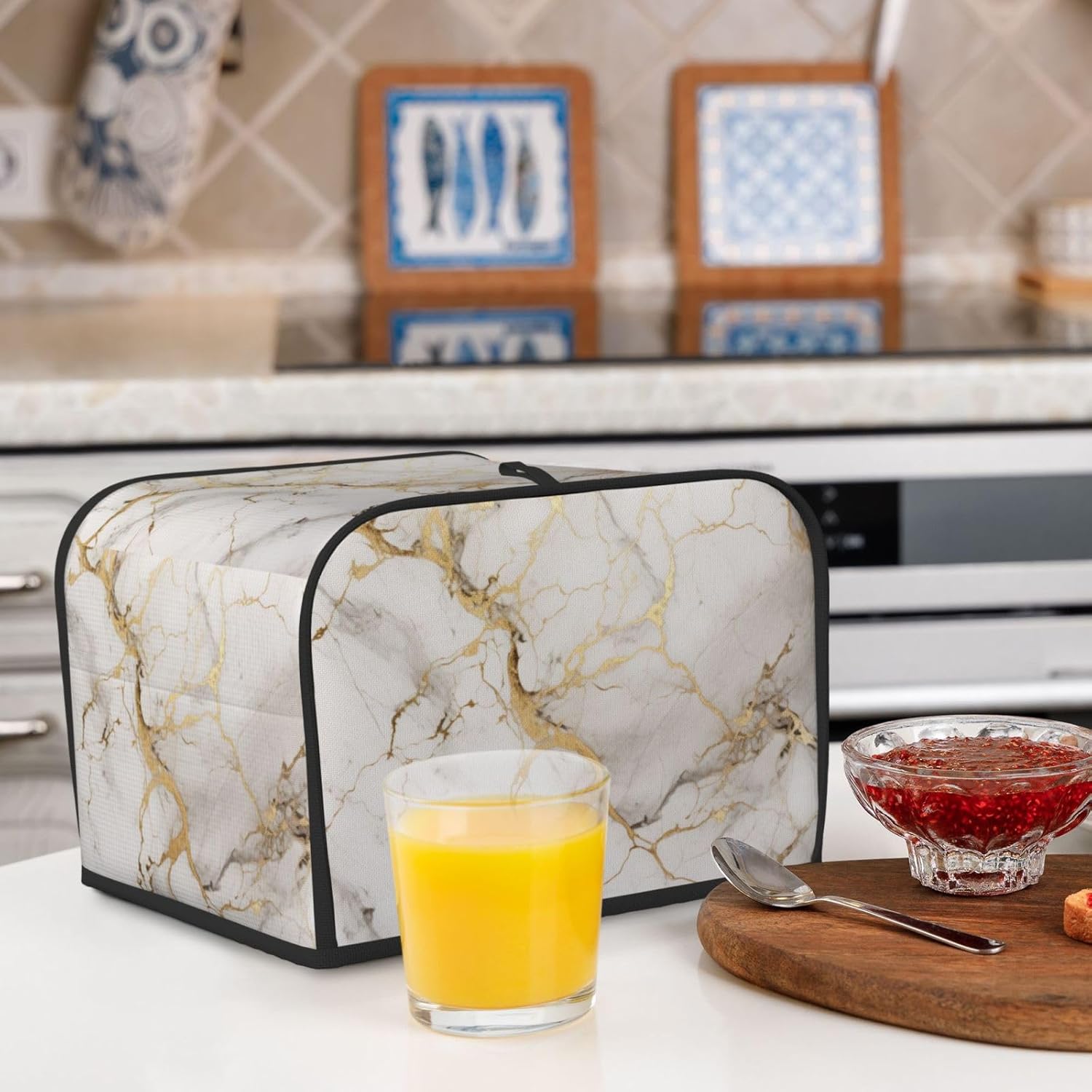 Toaster Cover 4 Slice Marble Gray Gold White Kitchen Small Appliance Covers with Pockets Dust and Fingerprint Protection