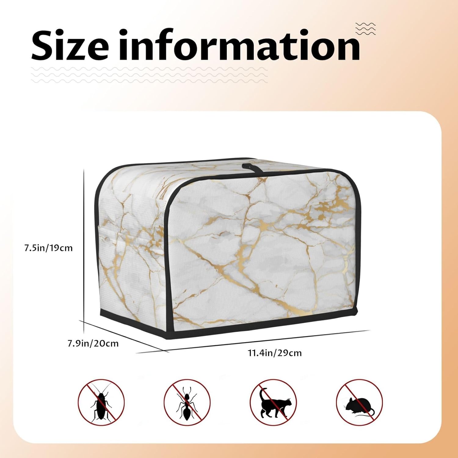 Toaster Cover 2 Slice White Gold Marble Abstract Kitchen Small Appliance Covers with Pockets Dust and Fingerprint Protection
