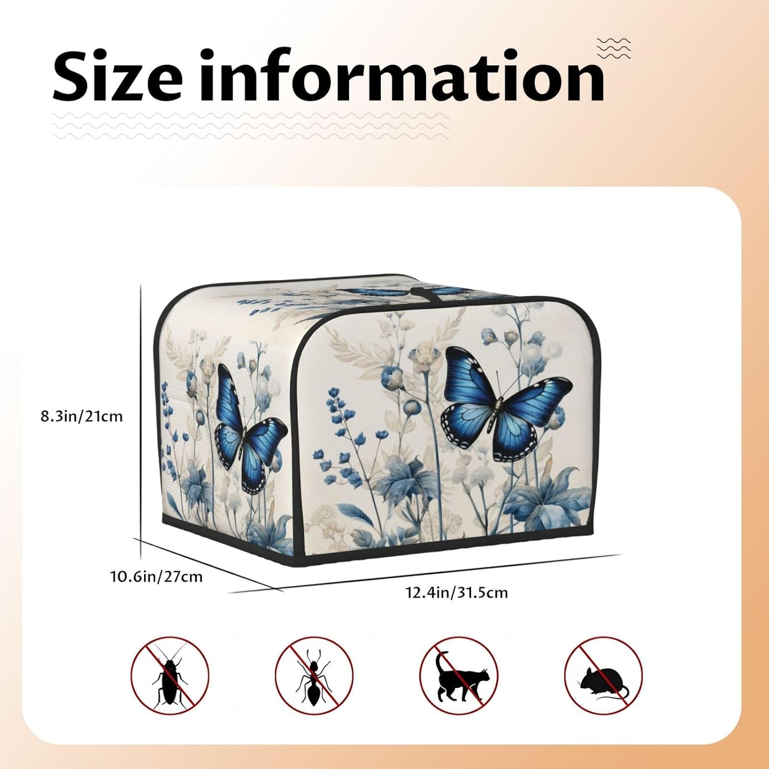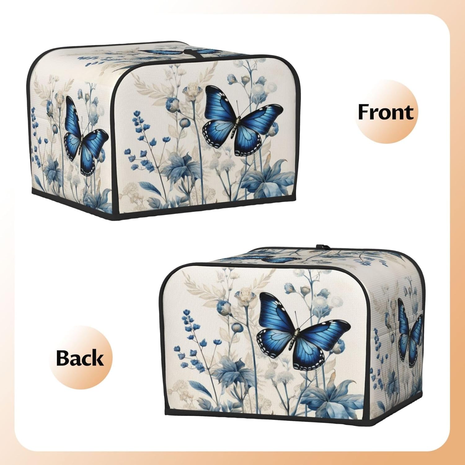 Toaster Cover 4 Slice Butterfly Blue Flower Boho Kitchen Small Appliance Covers with Pockets Dust and Fingerprint Protection